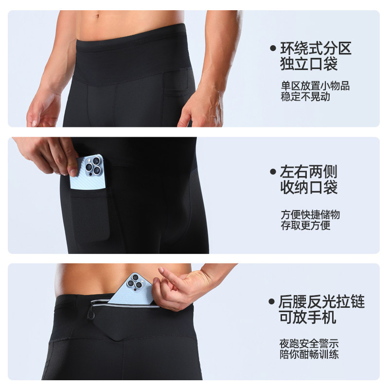 橙义家跑步压缩裤男专业马拉松运动长裤健身训练紧身裤后腰口袋