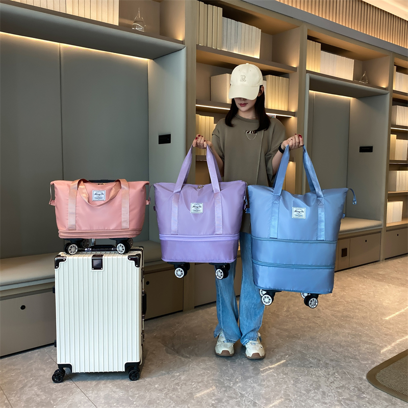 带轮子的旅行包短途女超大容量手提行李袋带滑轮可扩展便携收纳包