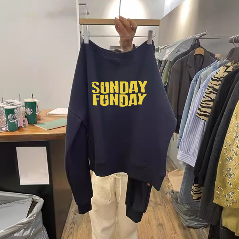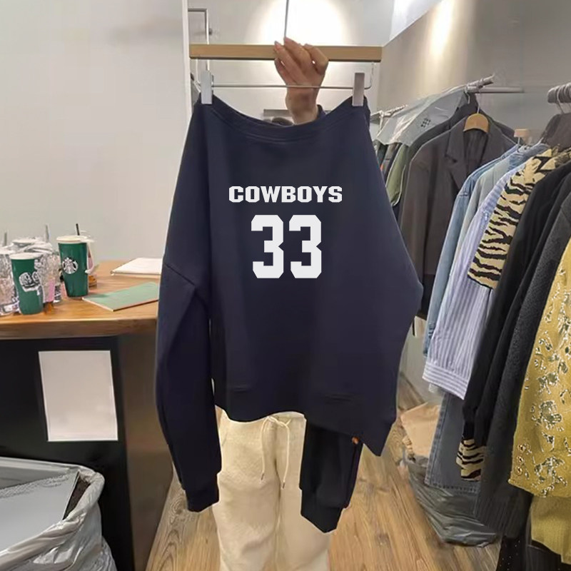早秋卫衣女款2026新款蓝色大码女装胖mm显瘦慵懒风露肩斜肩上衣女
