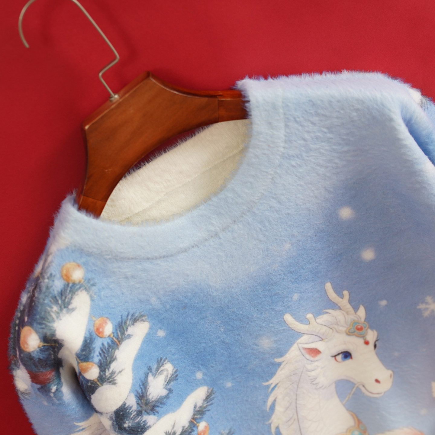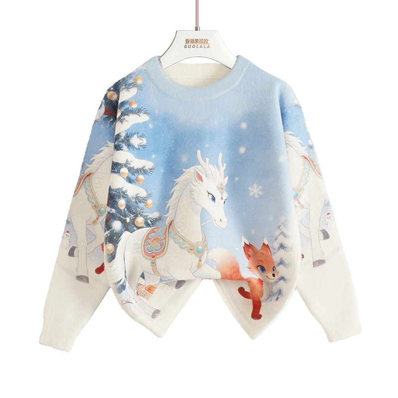 女童卡通宽松印花毛衣2026秋冬季新款蓝色长袖套头加厚保暖针织衫