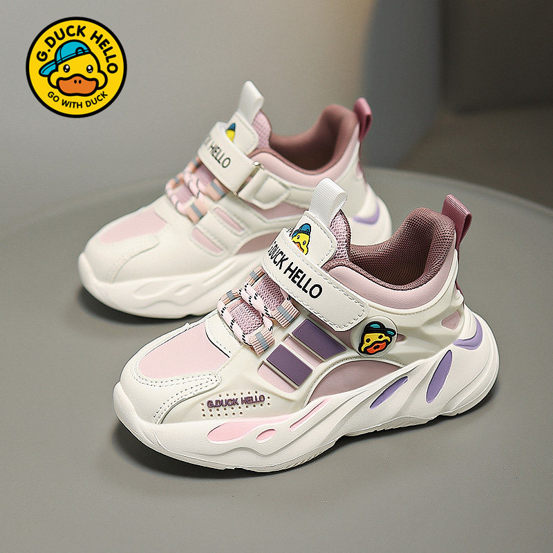 小黄鸭童鞋女童鞋子秋冬款2026新款小女孩皮面防水冬鞋儿童运动鞋