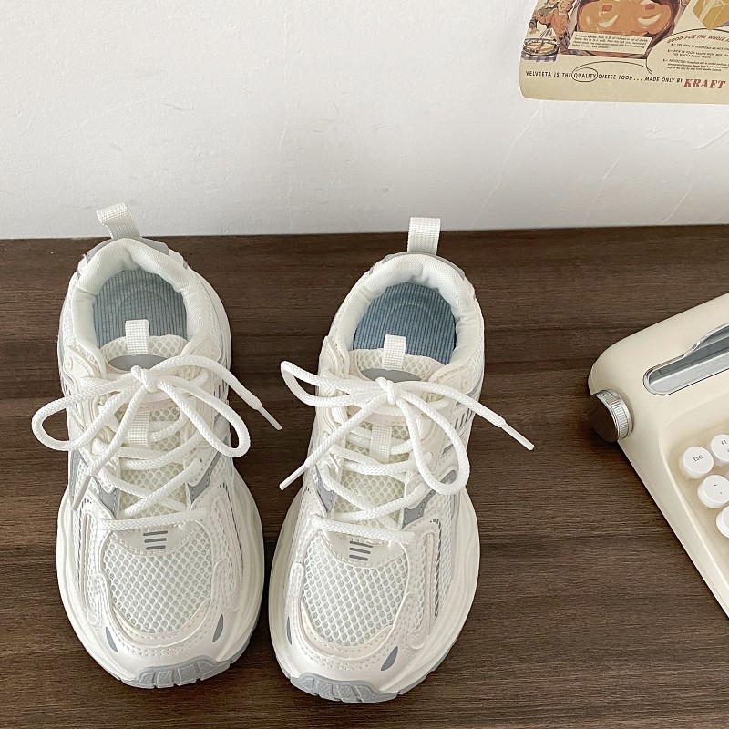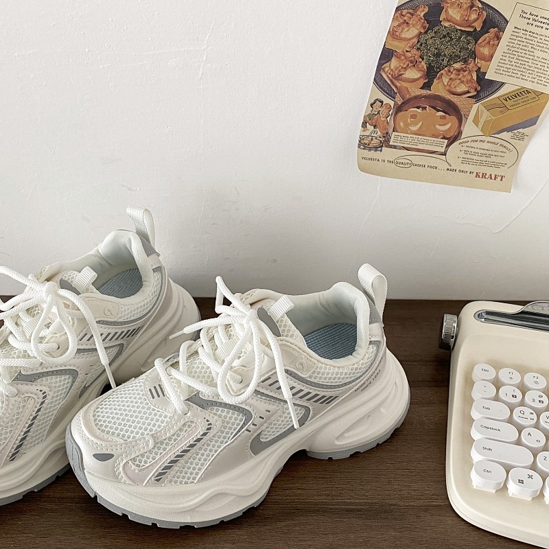 喜叔 白色厚底显脚小老爹鞋女款2024秋季新款轻便增高休闲运动鞋