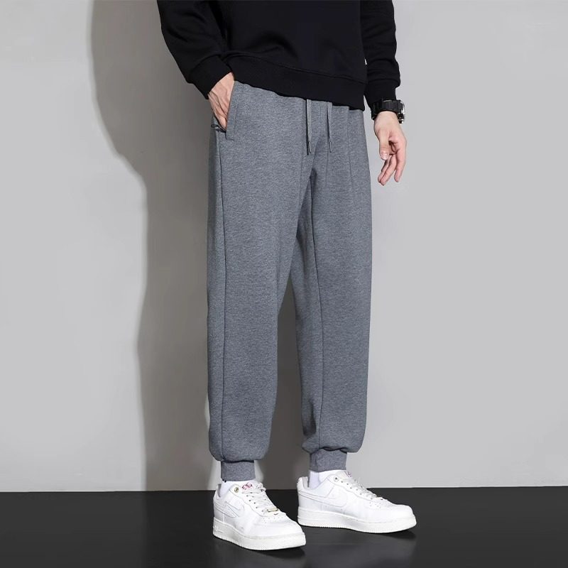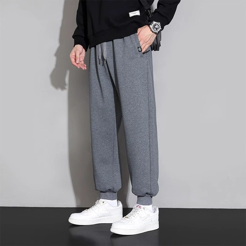 加绒裤子男士秋冬季宽松束脚卫裤男生加厚纯棉休闲运动长裤子男款