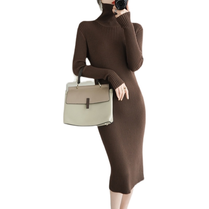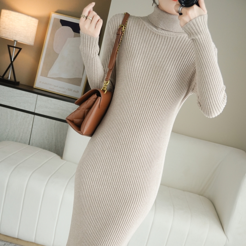 中长款高领套头毛衣裙女修身内搭羊毛过膝针织连衣裙打底衫配大衣