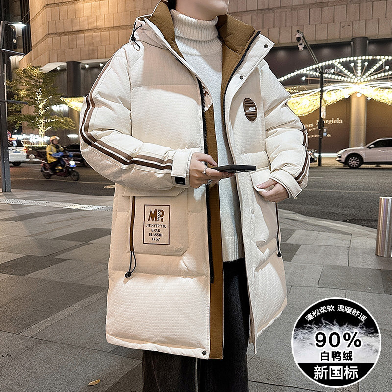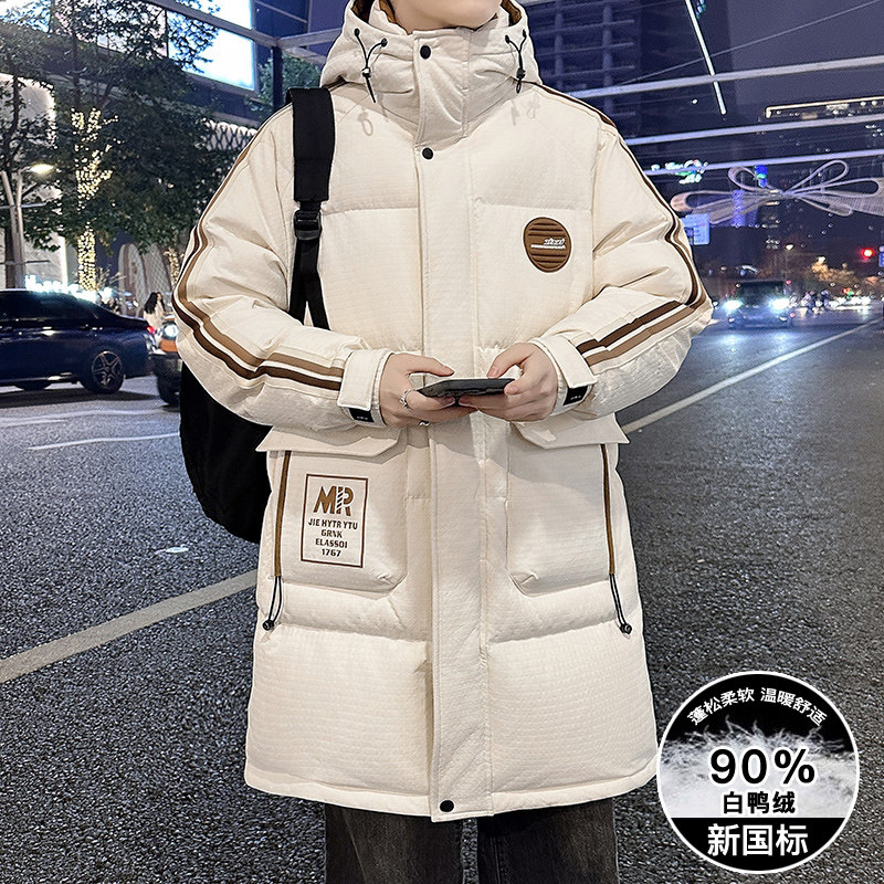 青少年羽绒服冬季男孩初高中学生中长款外套加厚保暖白鸭绒防寒服
