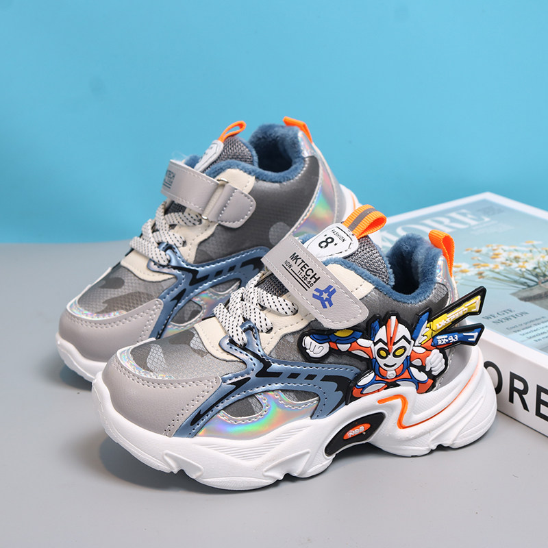 儿童运动鞋男童加绒冬季二棉薄绒皮面透气实心底小学生中小童童鞋