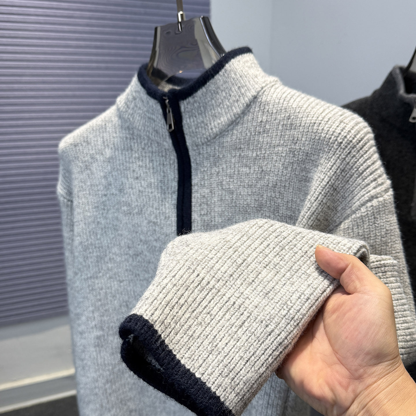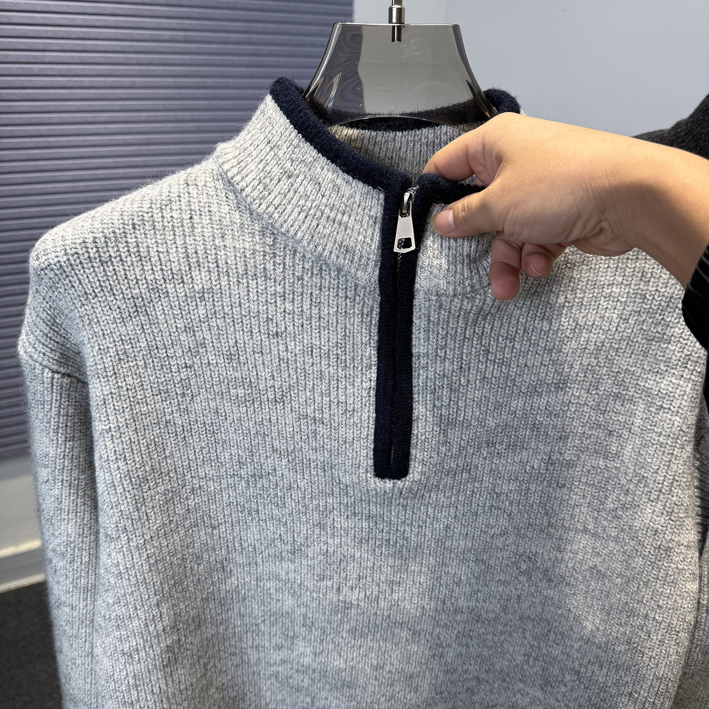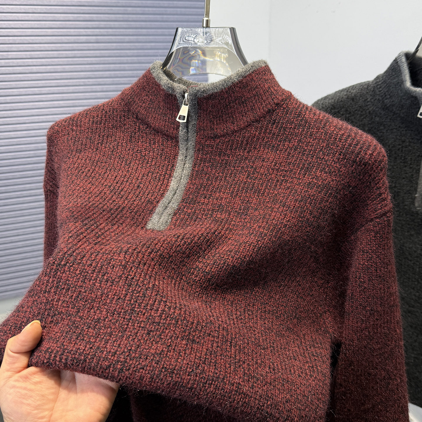 微阔版半高领毛衣男加厚冬季男款韩版宽松套头针织衫拉链立领上衣