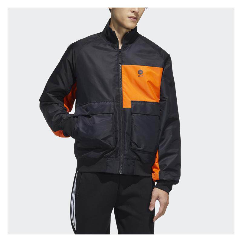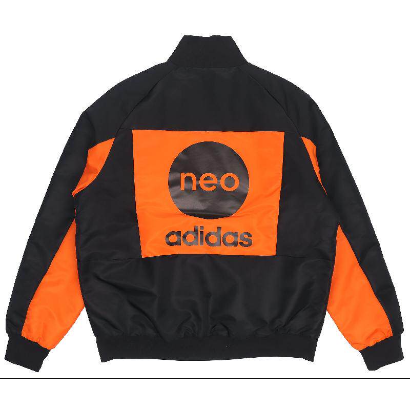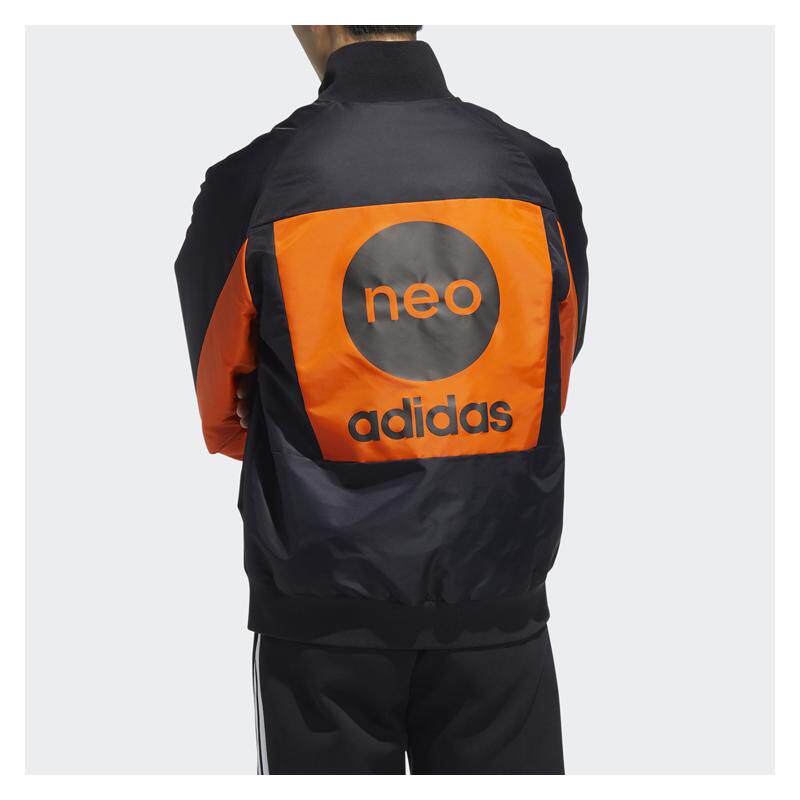adidas neo 拉链立领拼色运动保暖色块棒球领棉服 男款 黑色