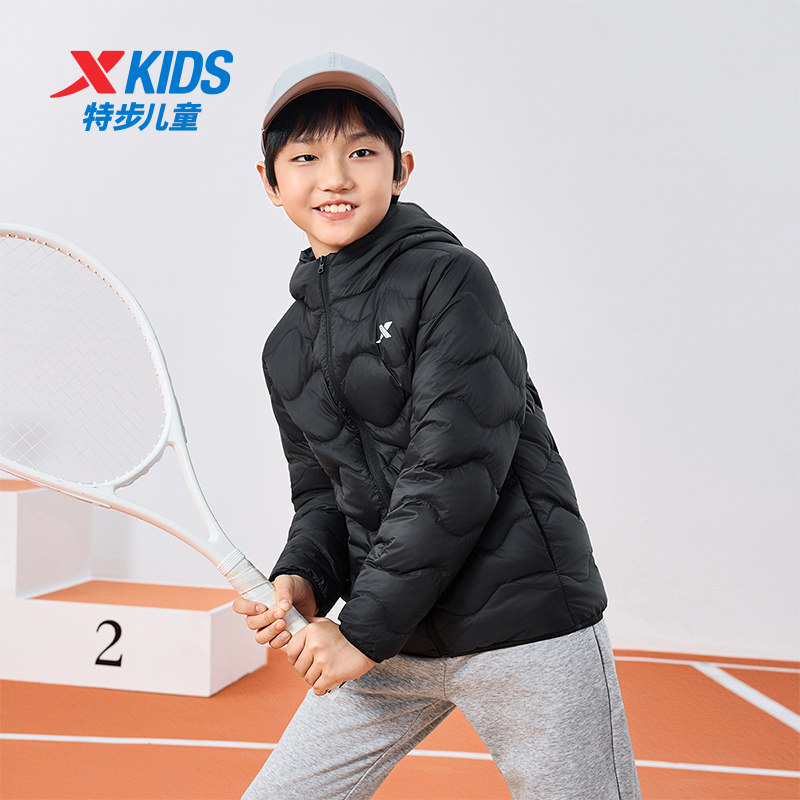 特步童装儿童绗缝轻薄款羽绒服2026年秋冬新款大童防寒服男童外套