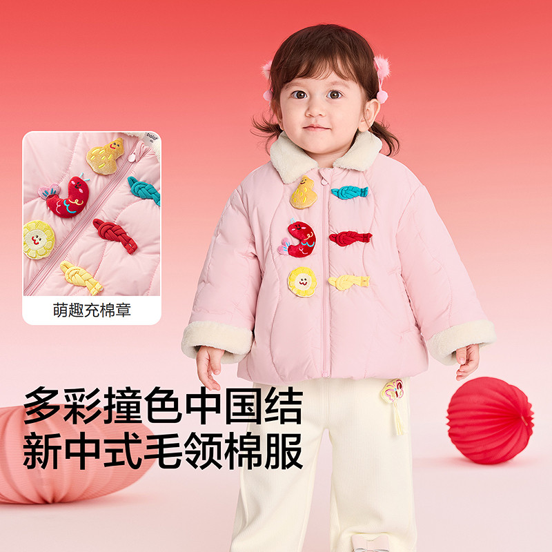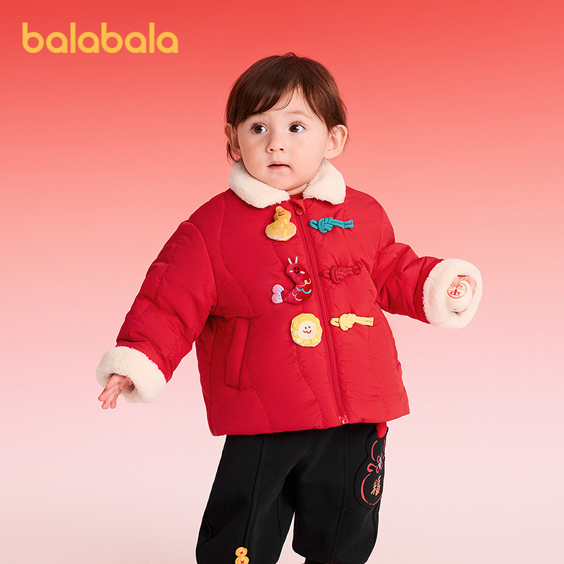 巴拉巴拉男童棉服中式外套女童外套春装2026新款红色新年拜年服潮