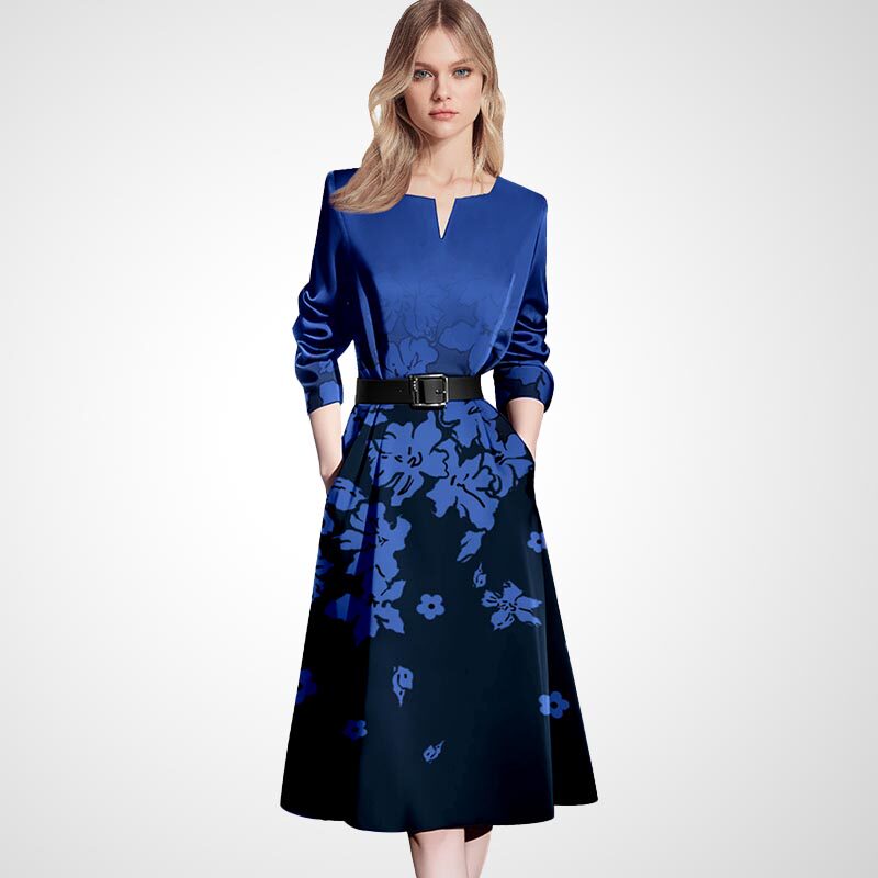 轻奢别致蓝色高级感优雅气质连衣裙女2026年春季新款时尚收腰裙子
