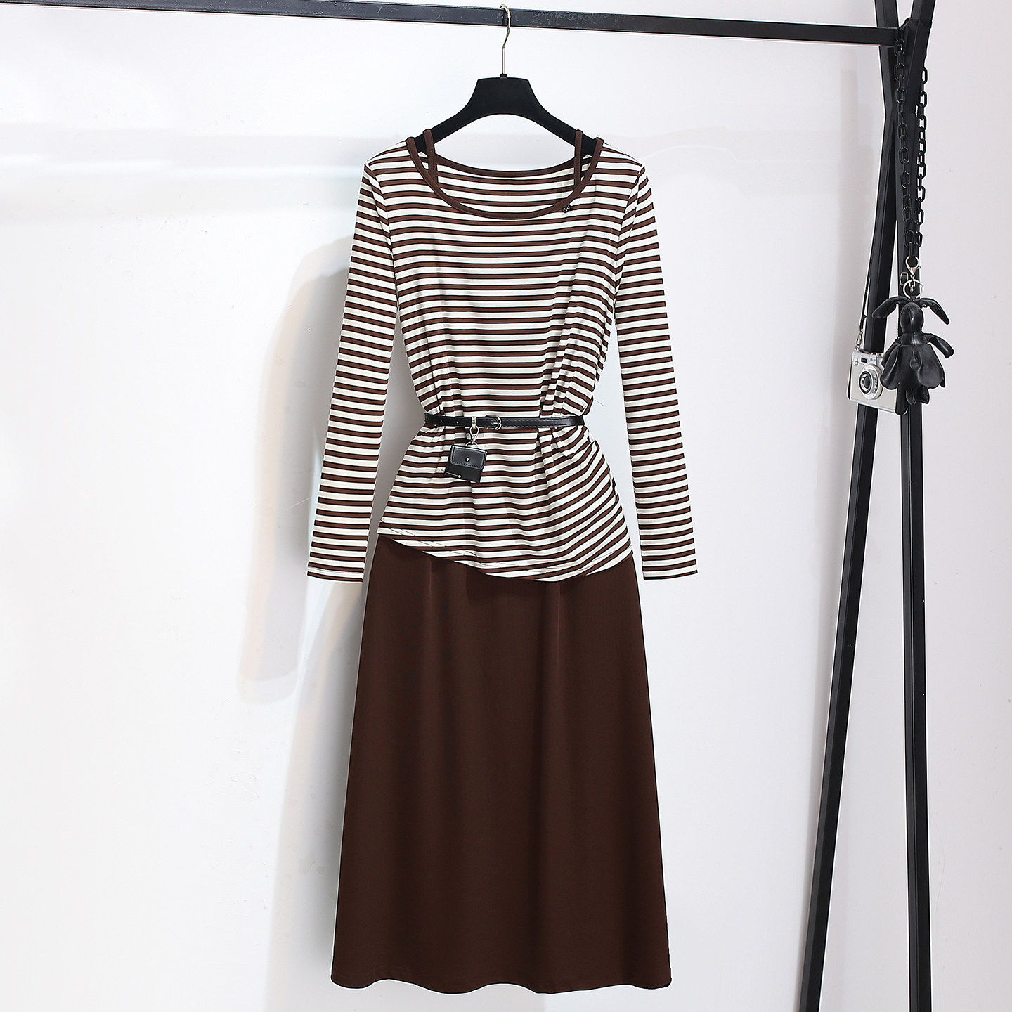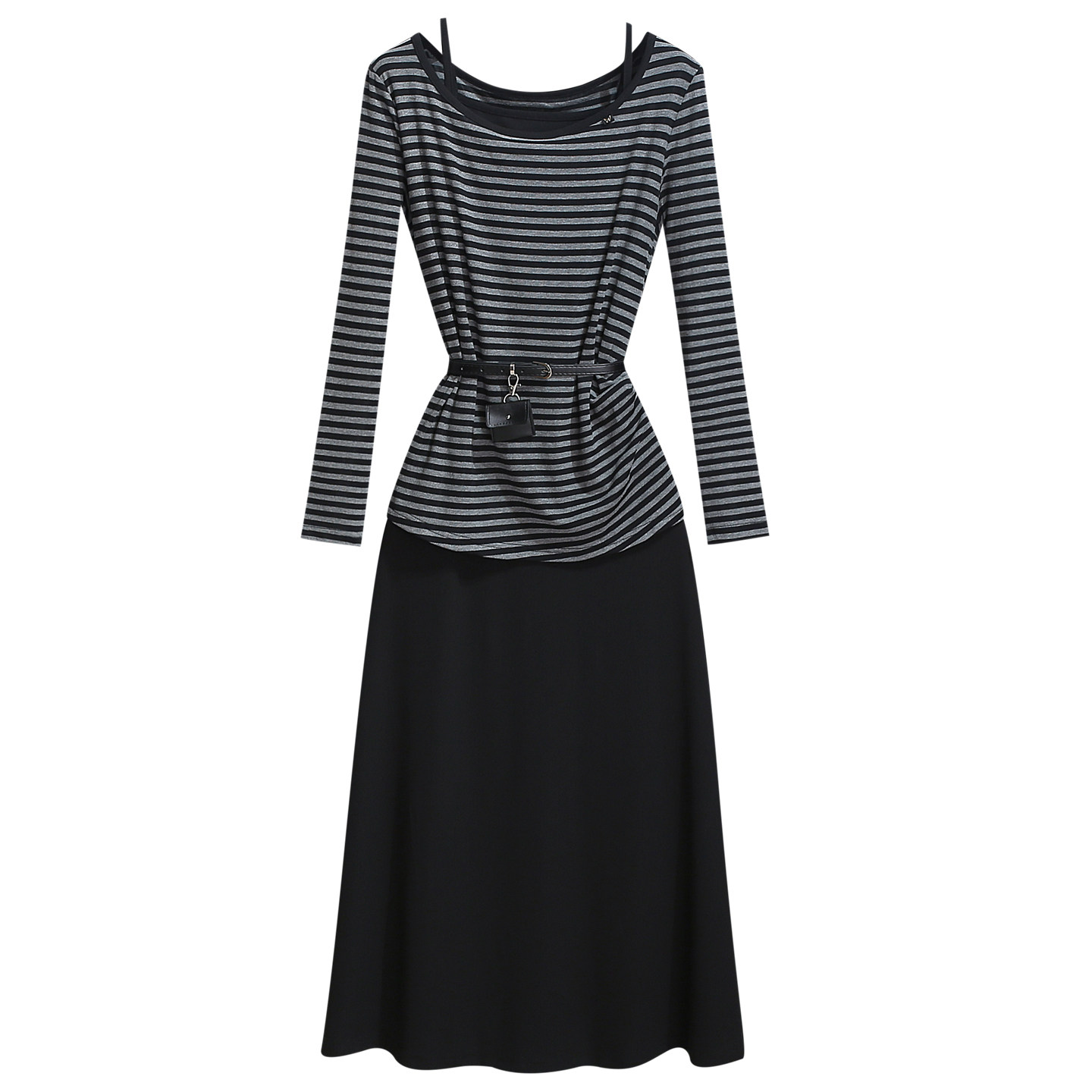 今年流行爆款条纹长袖罩衫上衣加吊带连衣裙女2026春装新款两件套