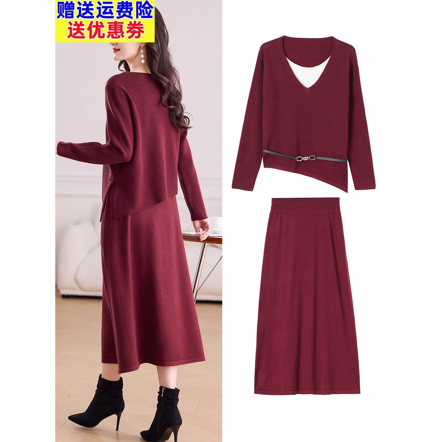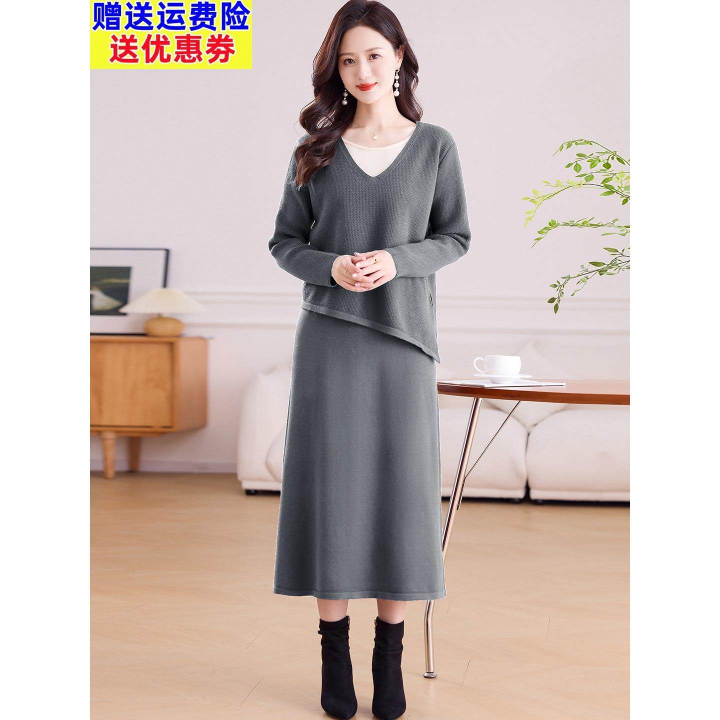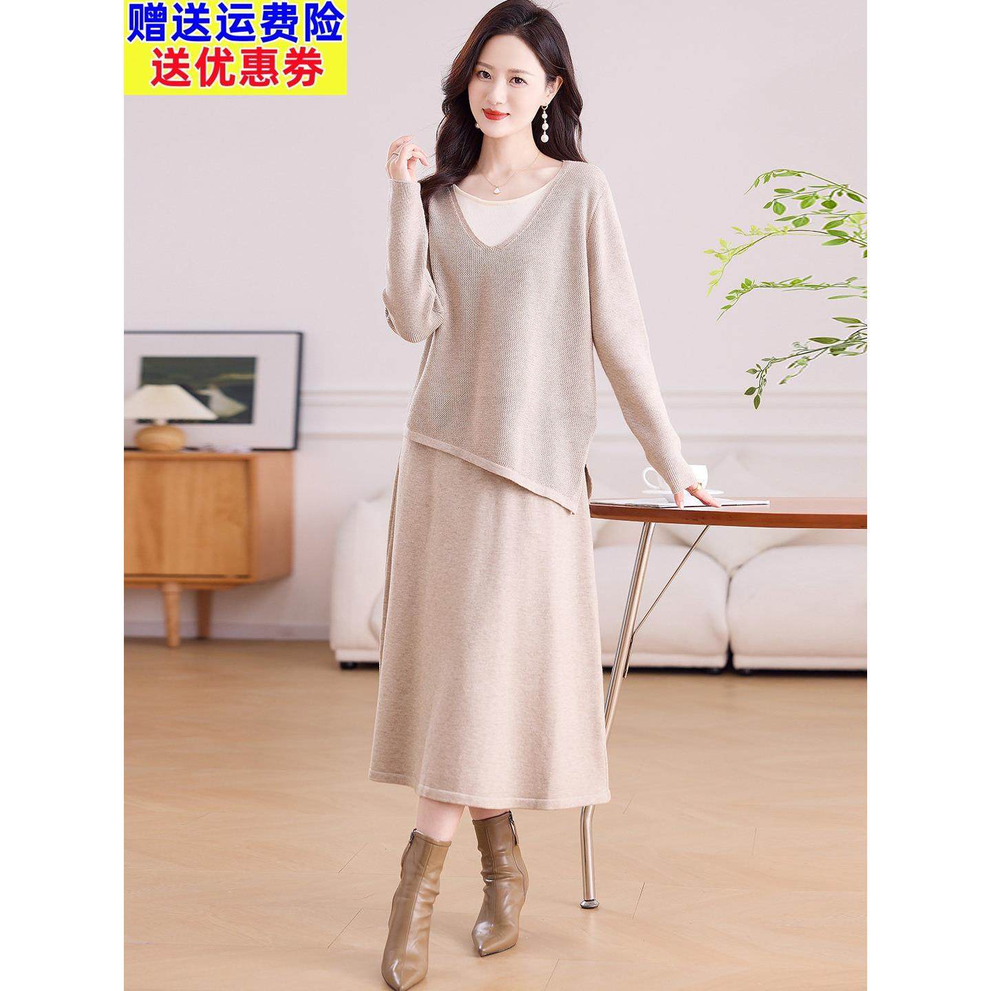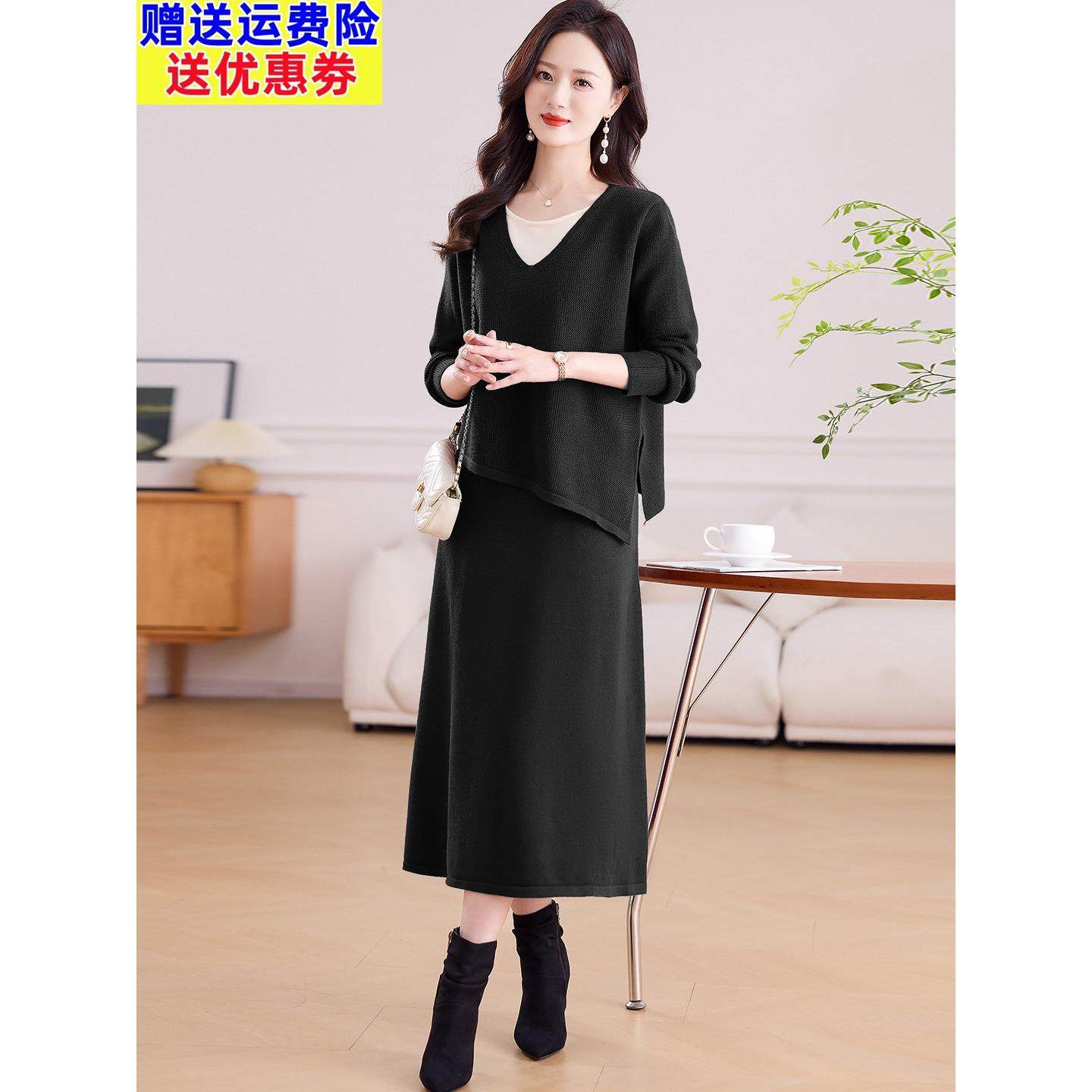 高级感针织连衣裙女两件套秋冬2025新款小个子妈妈毛衣打底套装裙