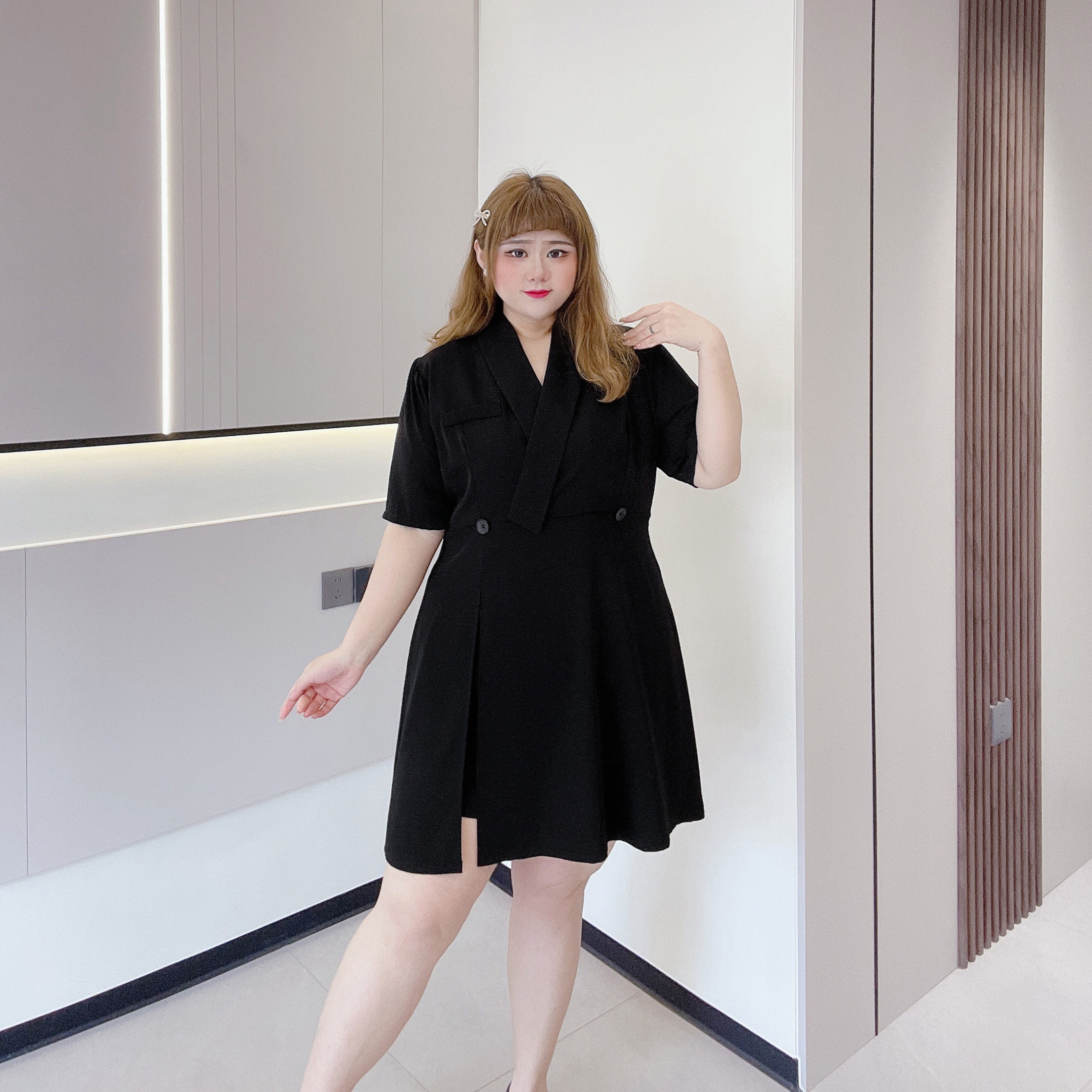 240斤大码女装胖MM通勤设计感女裙长短款开叉显瘦遮肉西服连衣裙