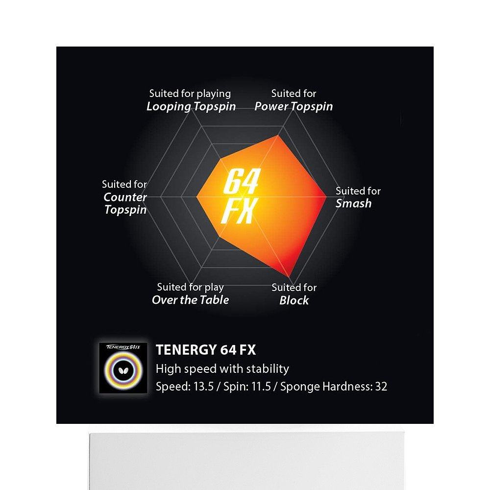 【日本直邮】BUTTERFLY蝴蝶 乒乓球拍反胶胶皮 红/中Tenaji 64 FX