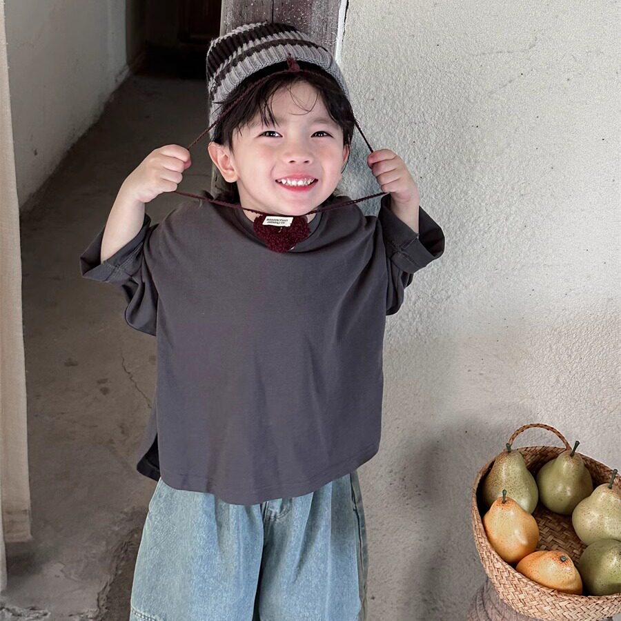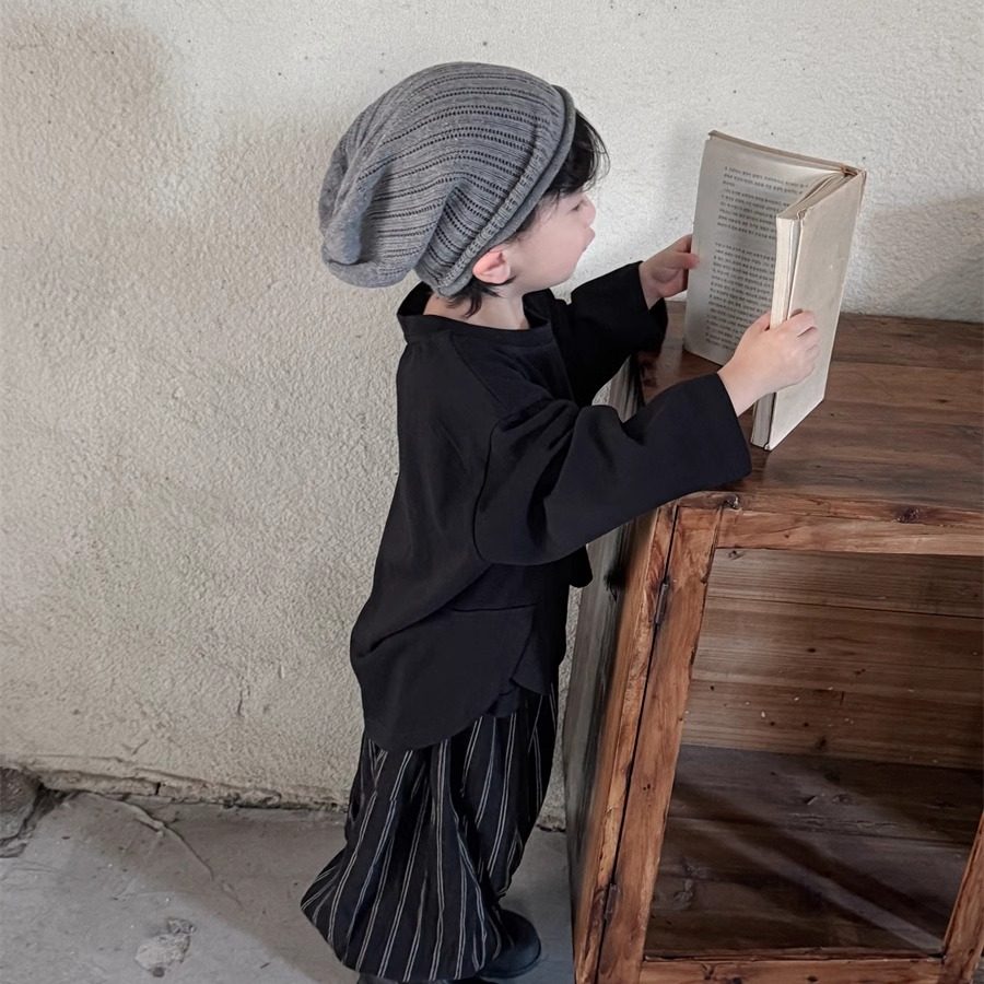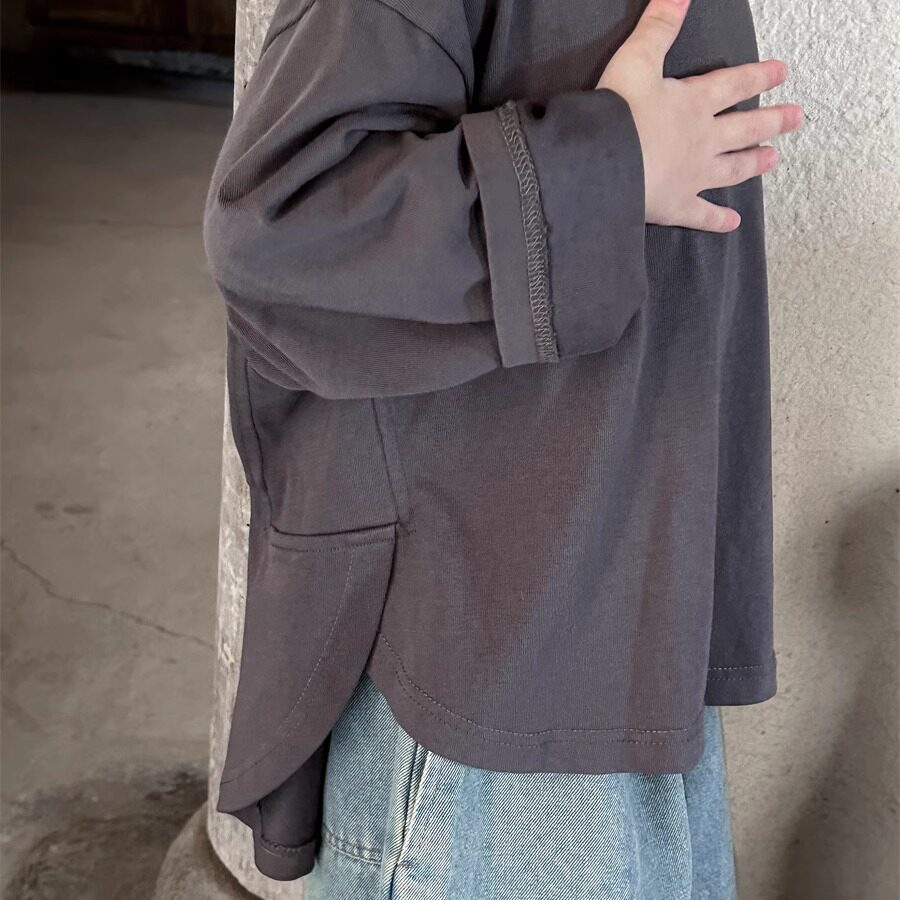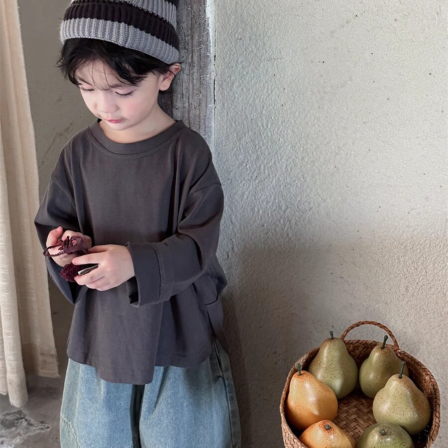 暮晨家新款春装2026男童净色长袖T恤中小童不规则圆领上衣打底衫