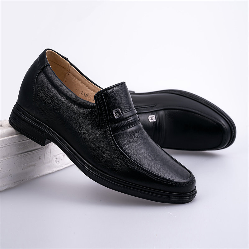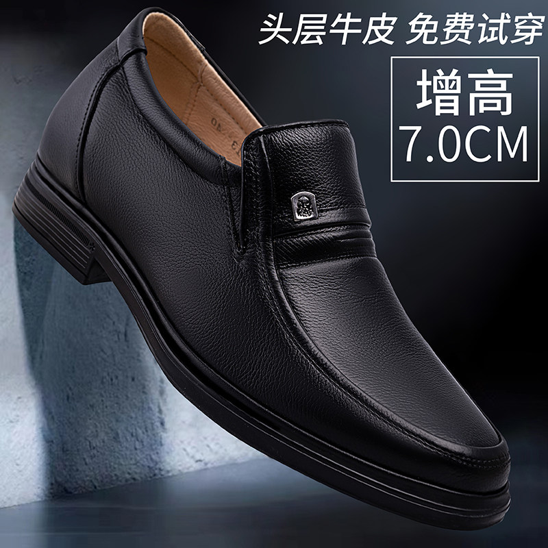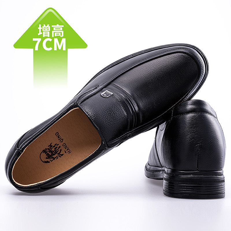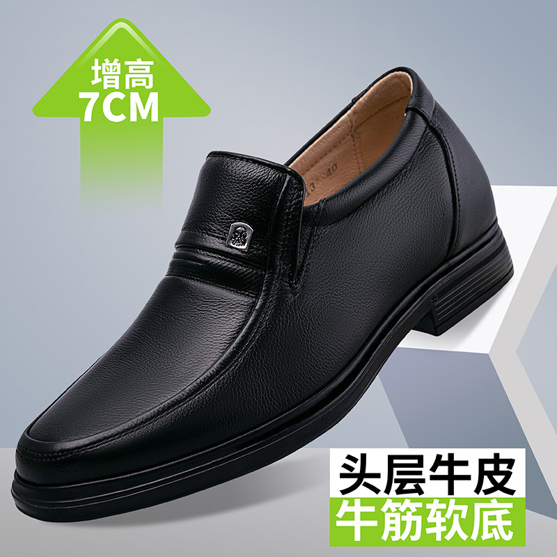隐形内增高男士米白色皮鞋商务休闲真皮牛皮软皮软底头层牛皮中年
