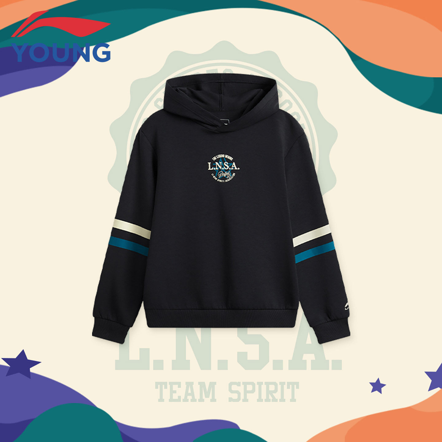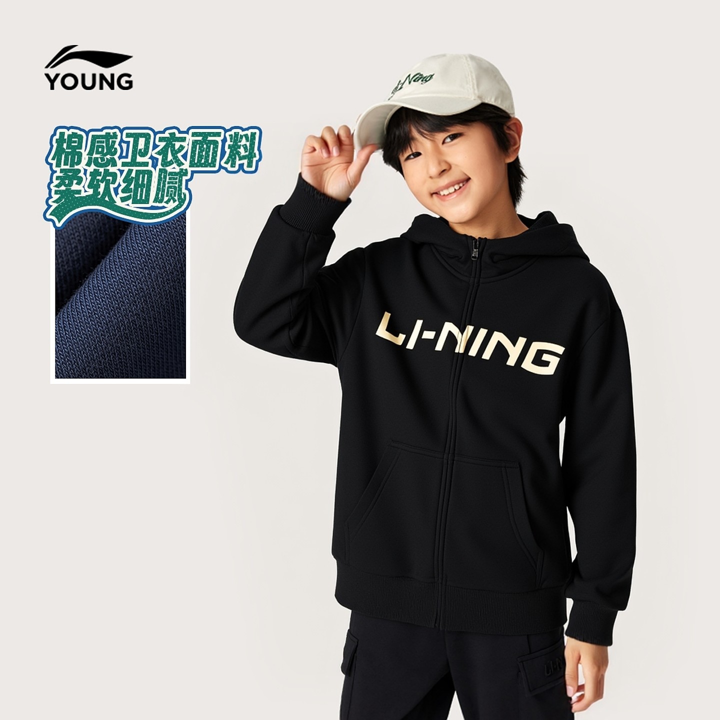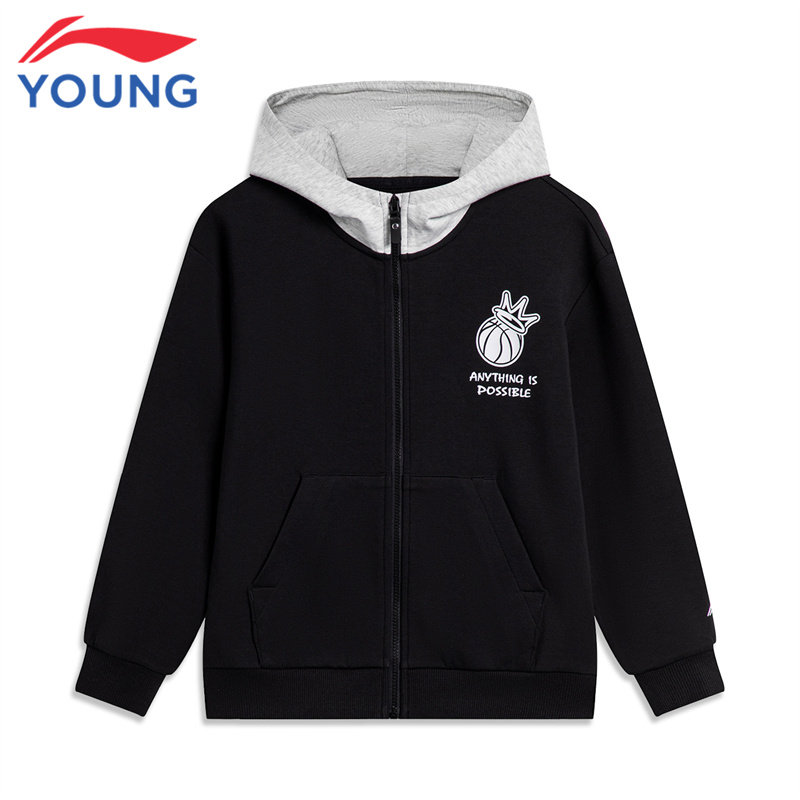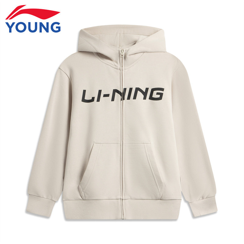 李宁童装儿童外套男童大童春秋新款棉质舒适宽松拉链开衫连帽卫衣