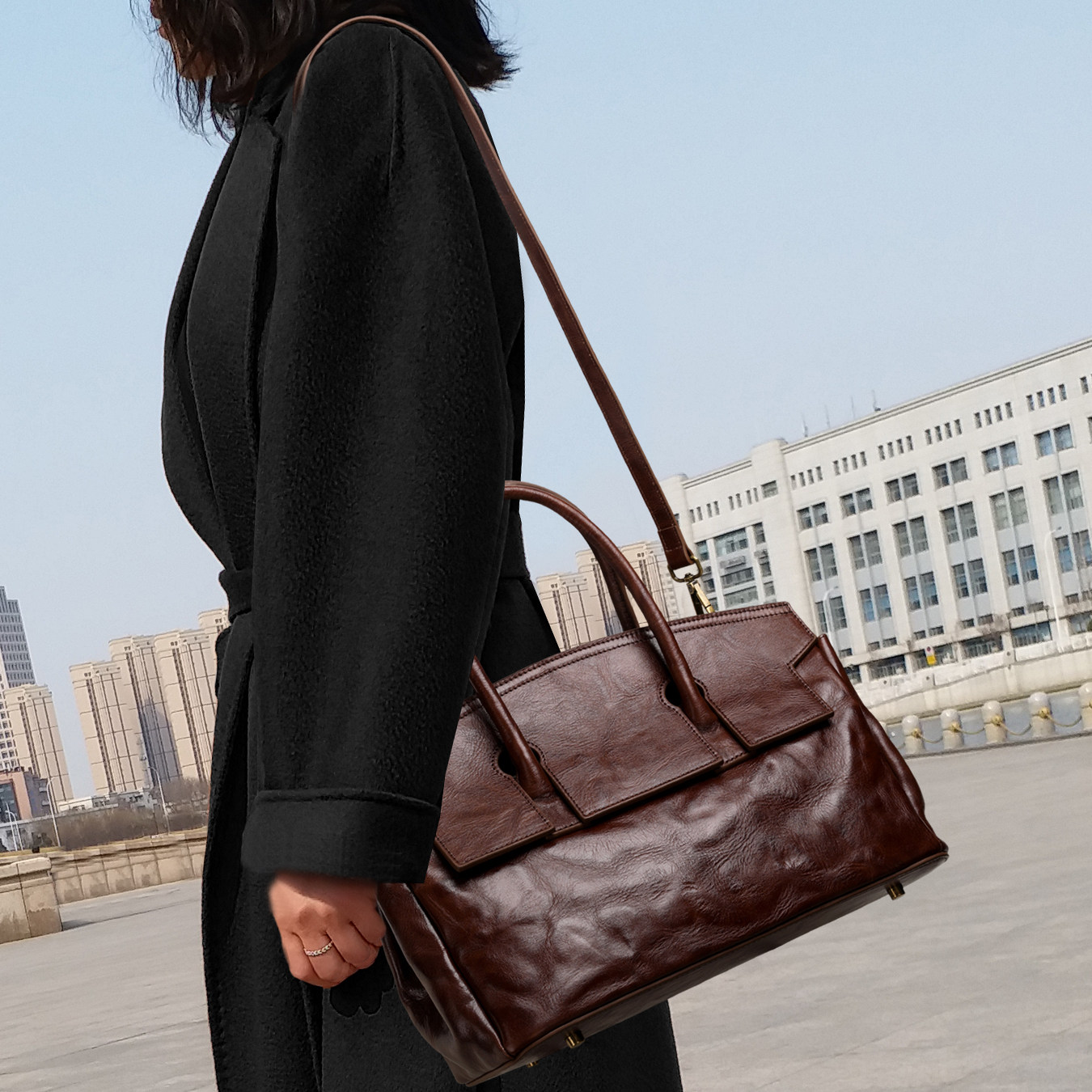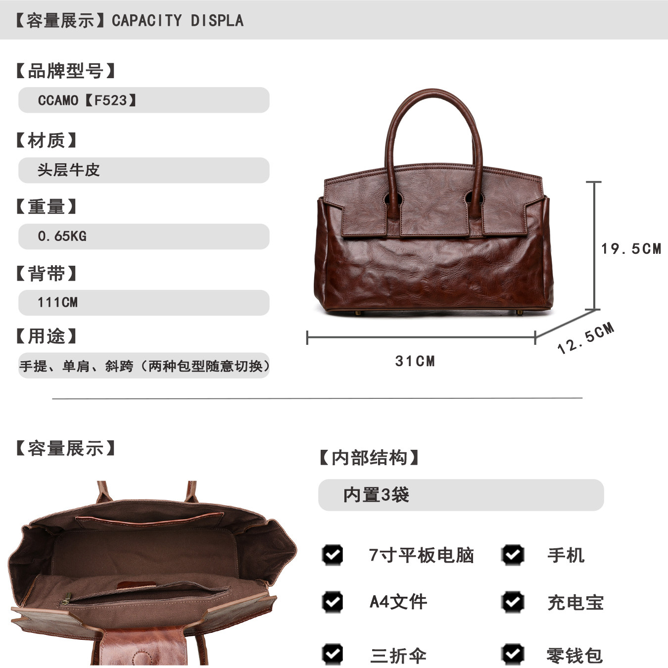 CCAMO包包女款轻奢小众褶皱牛皮大容量包包日常通勤百搭手提女包