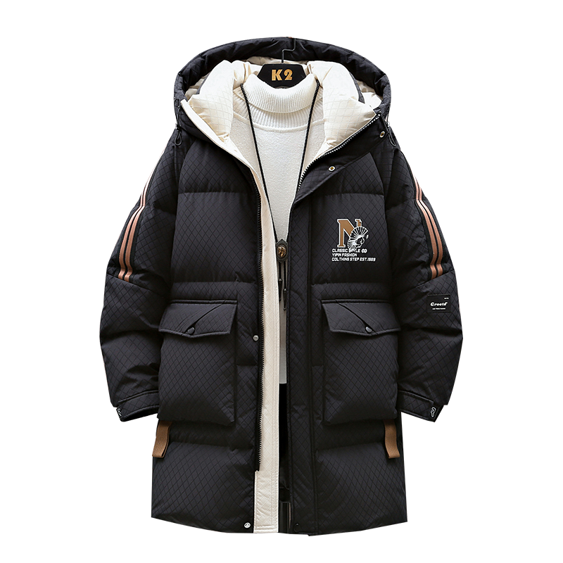 冬季13青少年中长款羽绒服12岁潮流男孩14中学生15大童白鸭绒外套