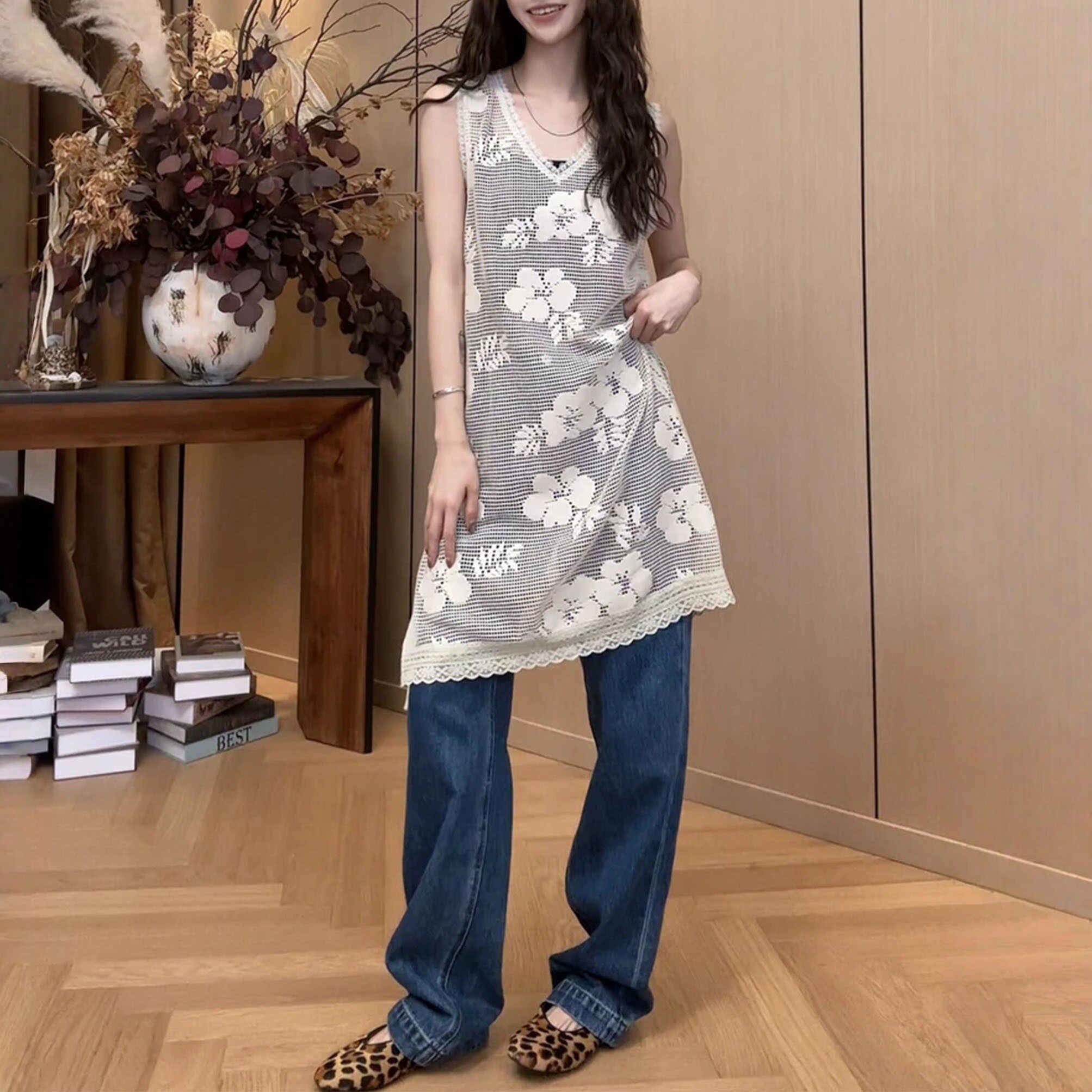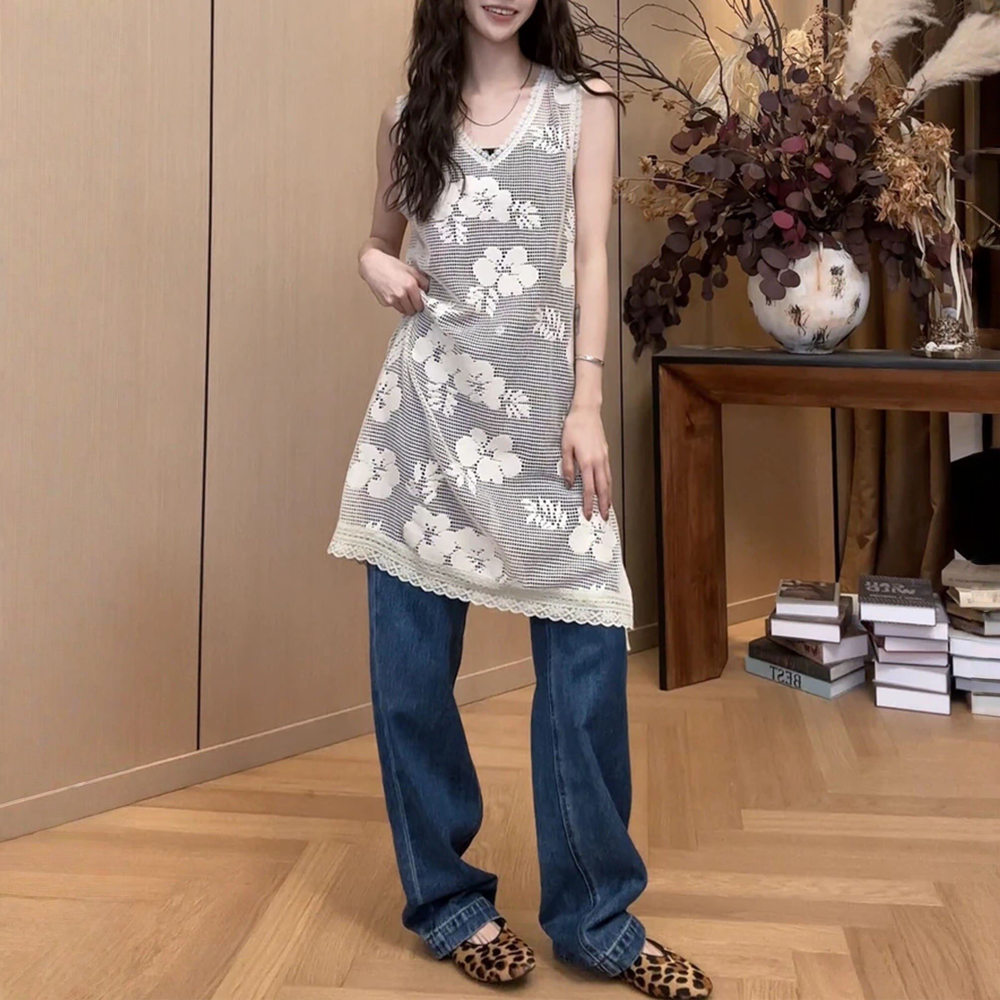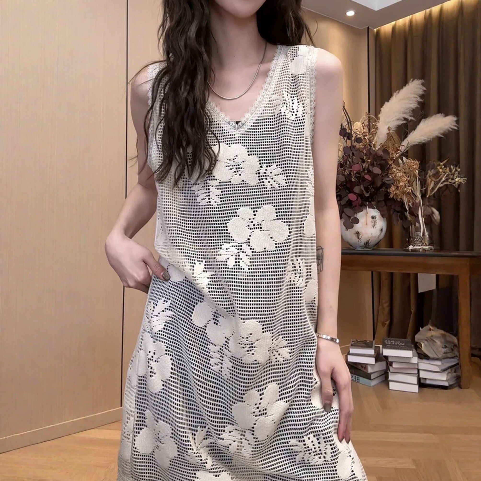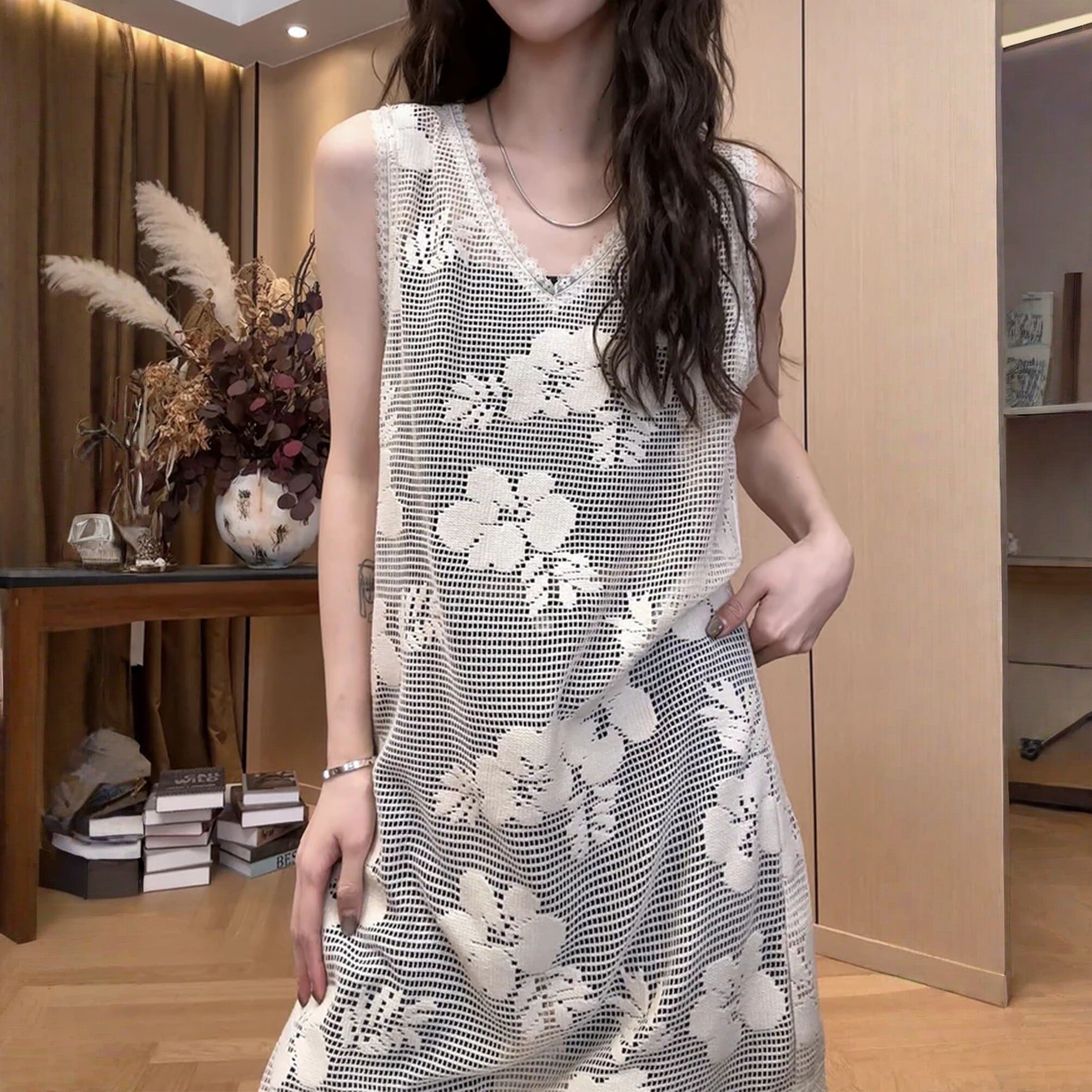 2026早春新款洋气无袖V领连衣裙女时尚百搭显瘦蕾丝设计感背心裙