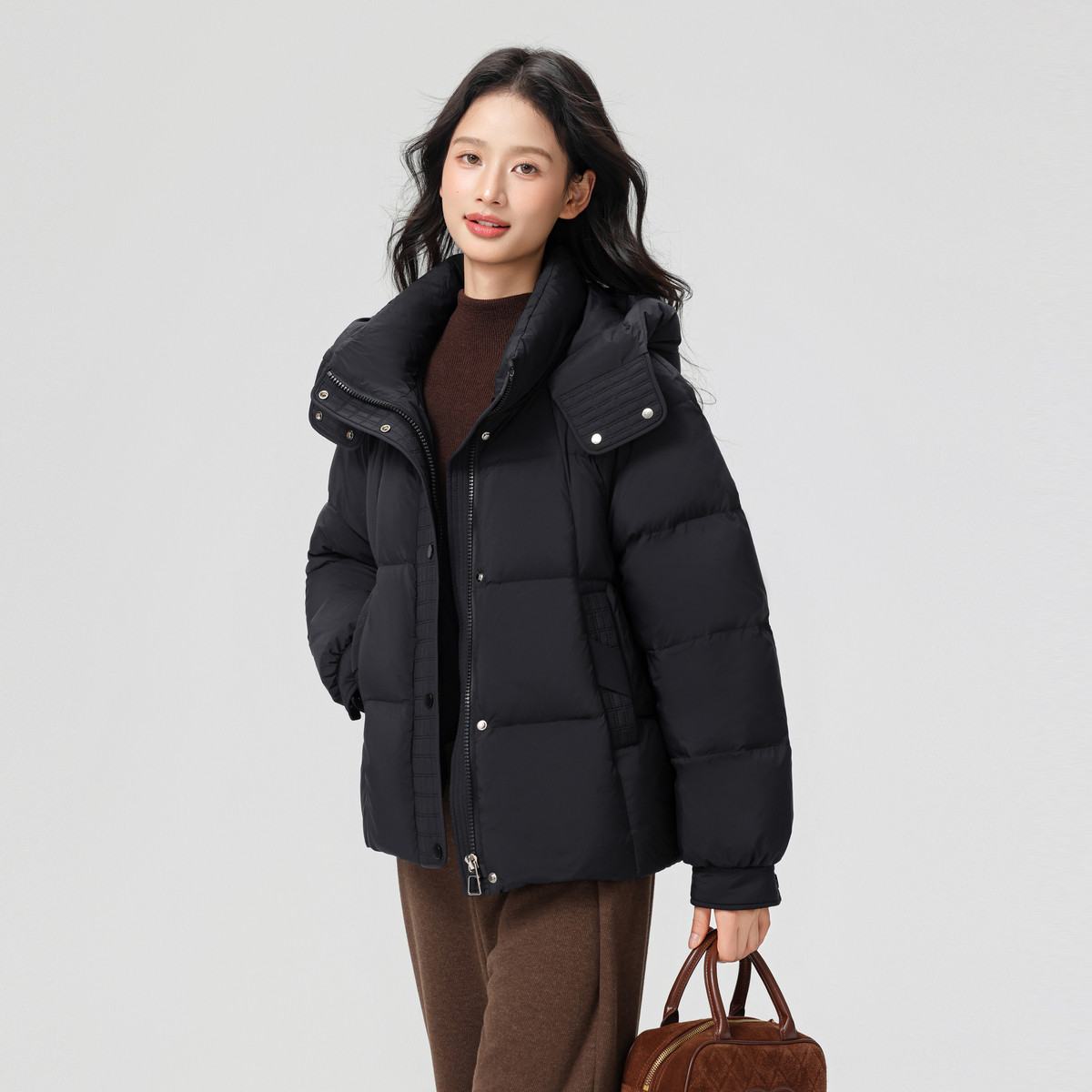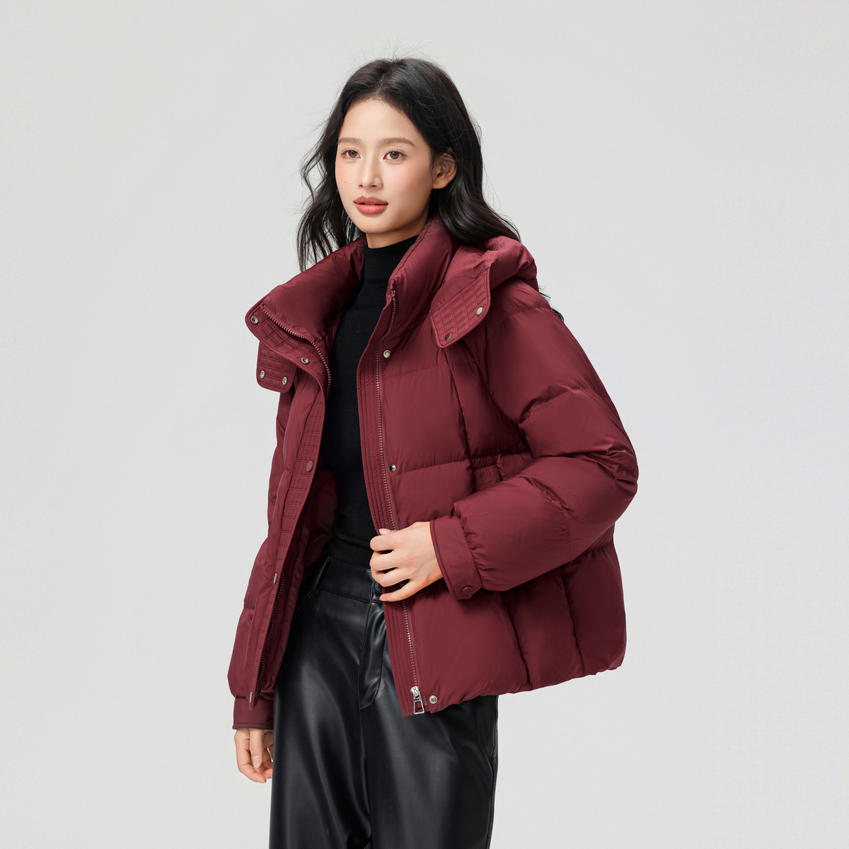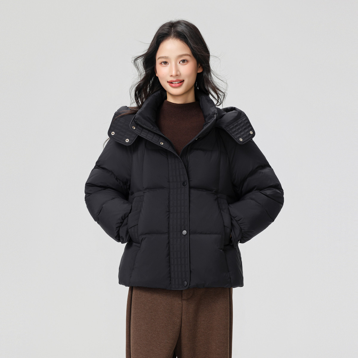 雪中飞2026春新款女士羽绒服短款时尚暗花保暖韩版连帽气质保暖