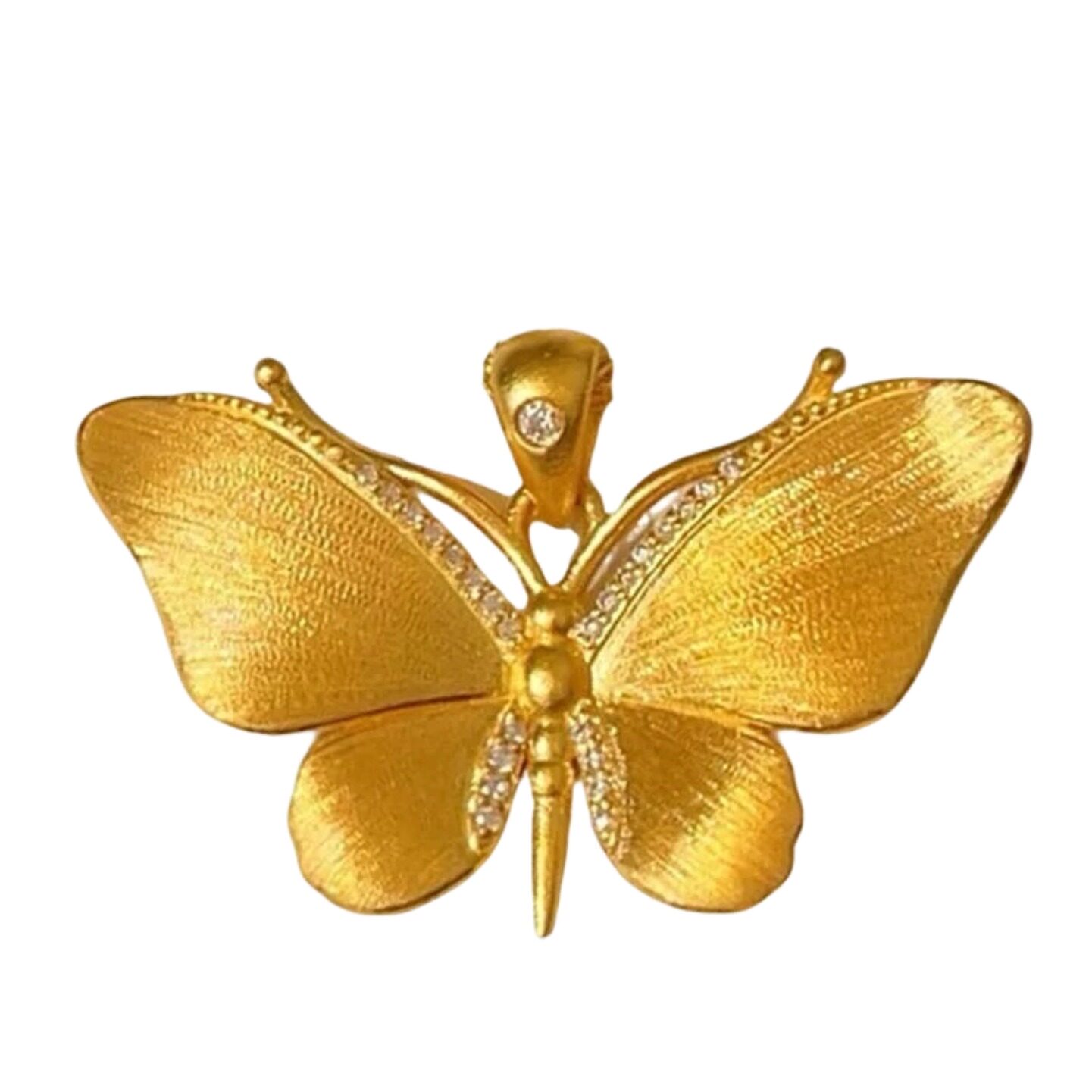 新款拉丝蝴蝶纯黄金吊坠999足金灵蝶项链时尚优雅点钻款毛衣链