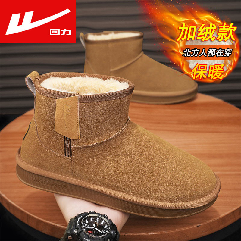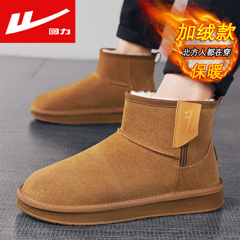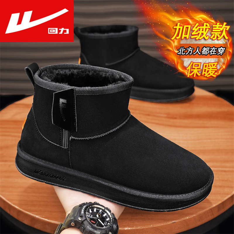 回力男鞋秋季加绒加厚保暖棉鞋哈尔滨抗寒雪地靴防水防滑面包棉靴