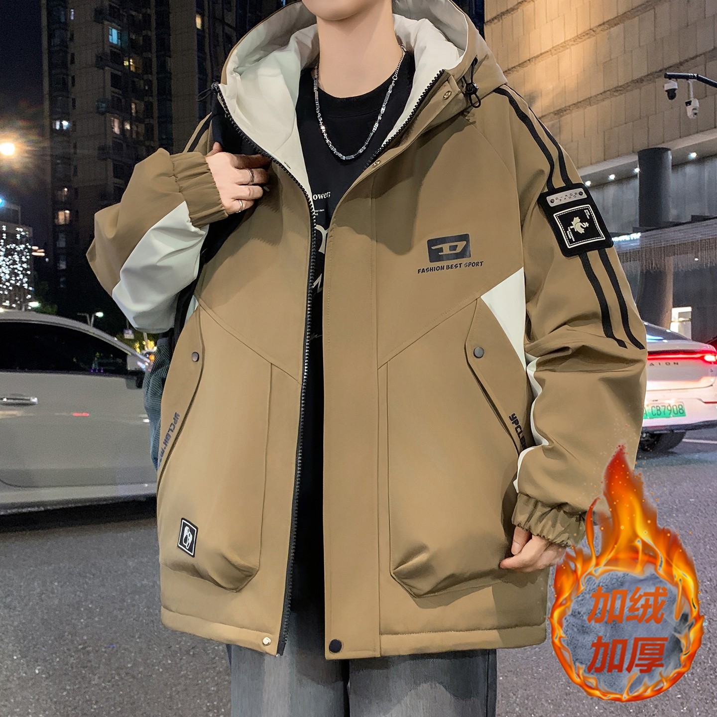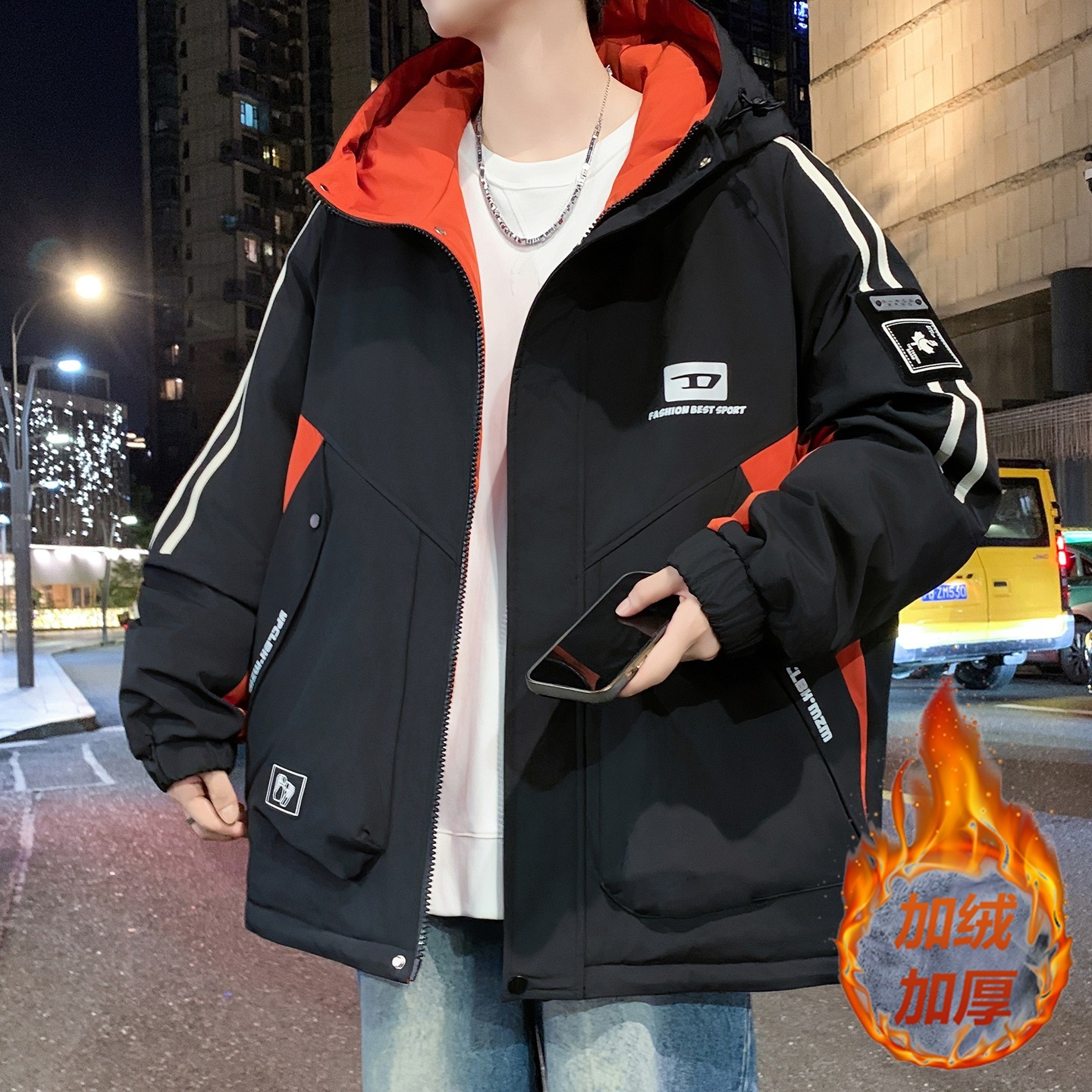 青少年加绒外套男秋冬季羽绒服高初中学生帅气潮流男孩子加厚冬装