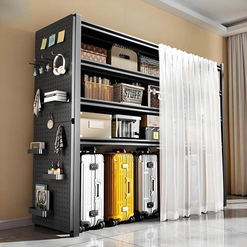 防尘帘置物架厂家层家用货架行李箱落地客纳铁厅收架洞洞板储多物