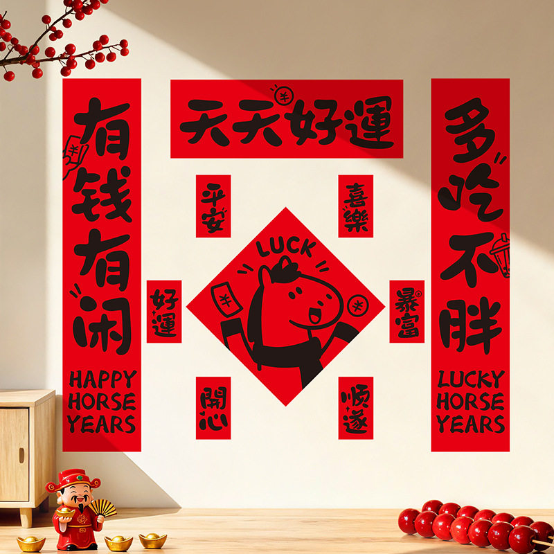 2026马年对联新款创意年轻人春联自带背胶入户门装饰新年门贴磁吸
