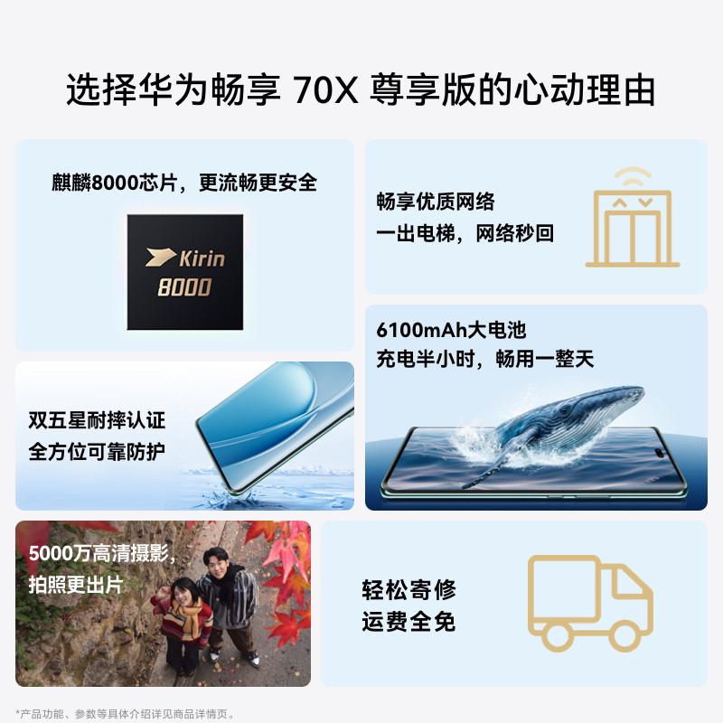 【国家补贴】华为畅享 70X 尊享版 6100mAh华为巨鲸长续航 麒麟8000芯片华为官方旗舰店鸿蒙直面屏智能手机