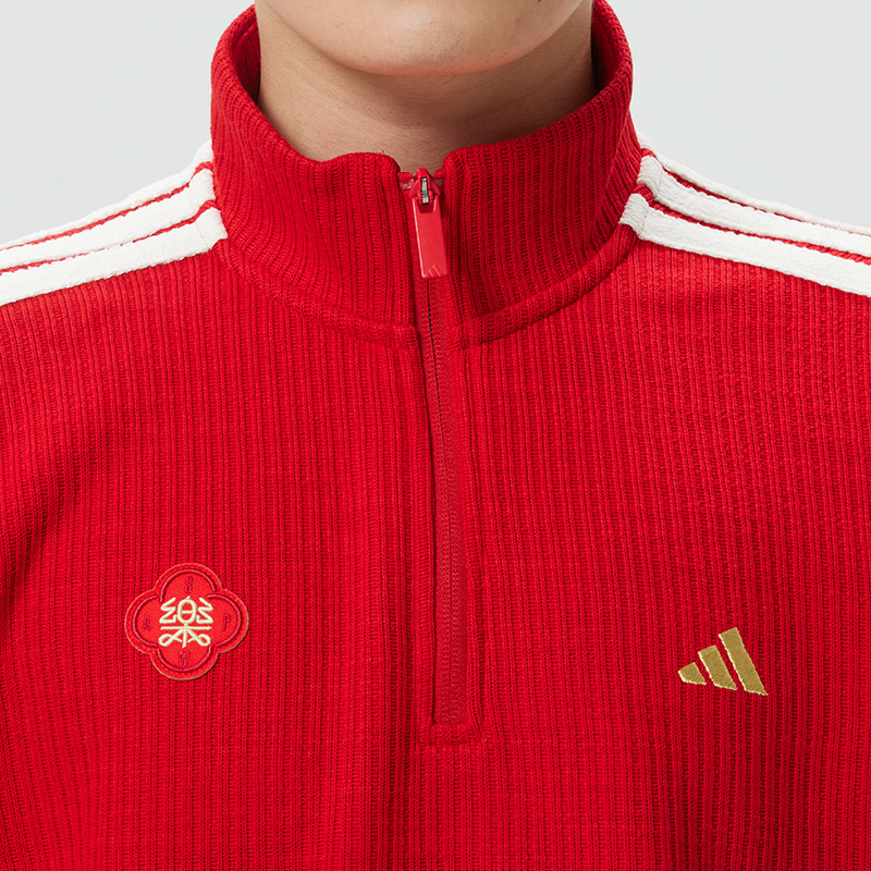 阿迪达斯马年新年款CNY红色卫衣男装半高领休闲长袖套头衫KW4757