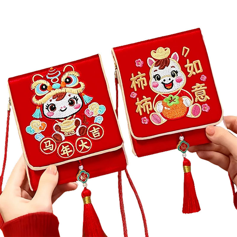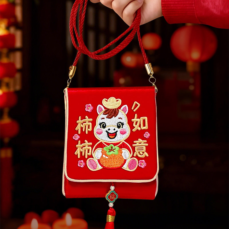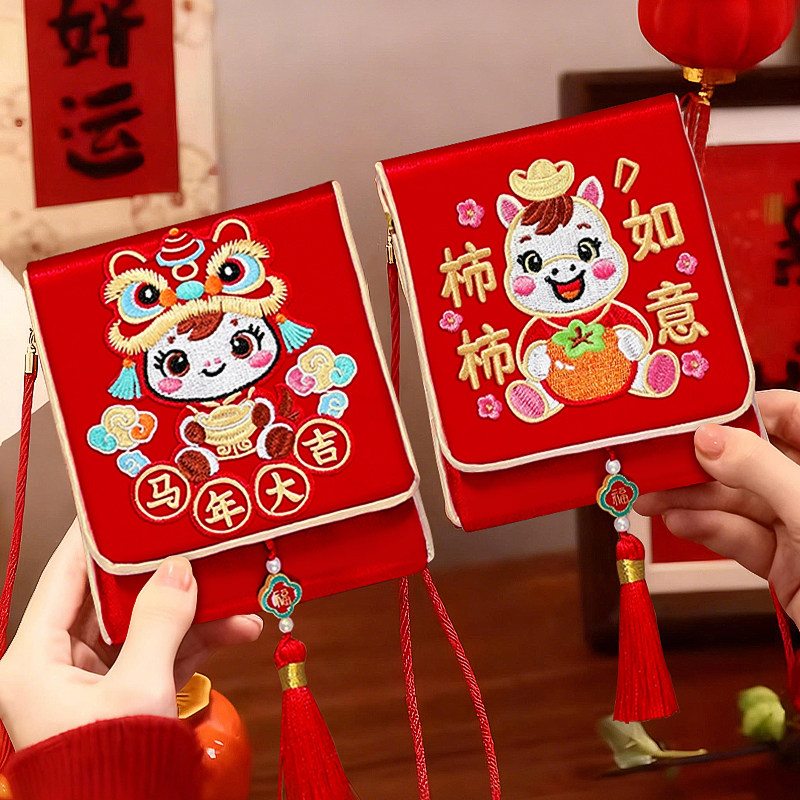 平安喜乐2026年马年生日周岁满月红包袋金榜题名布艺刺绣新年福袋