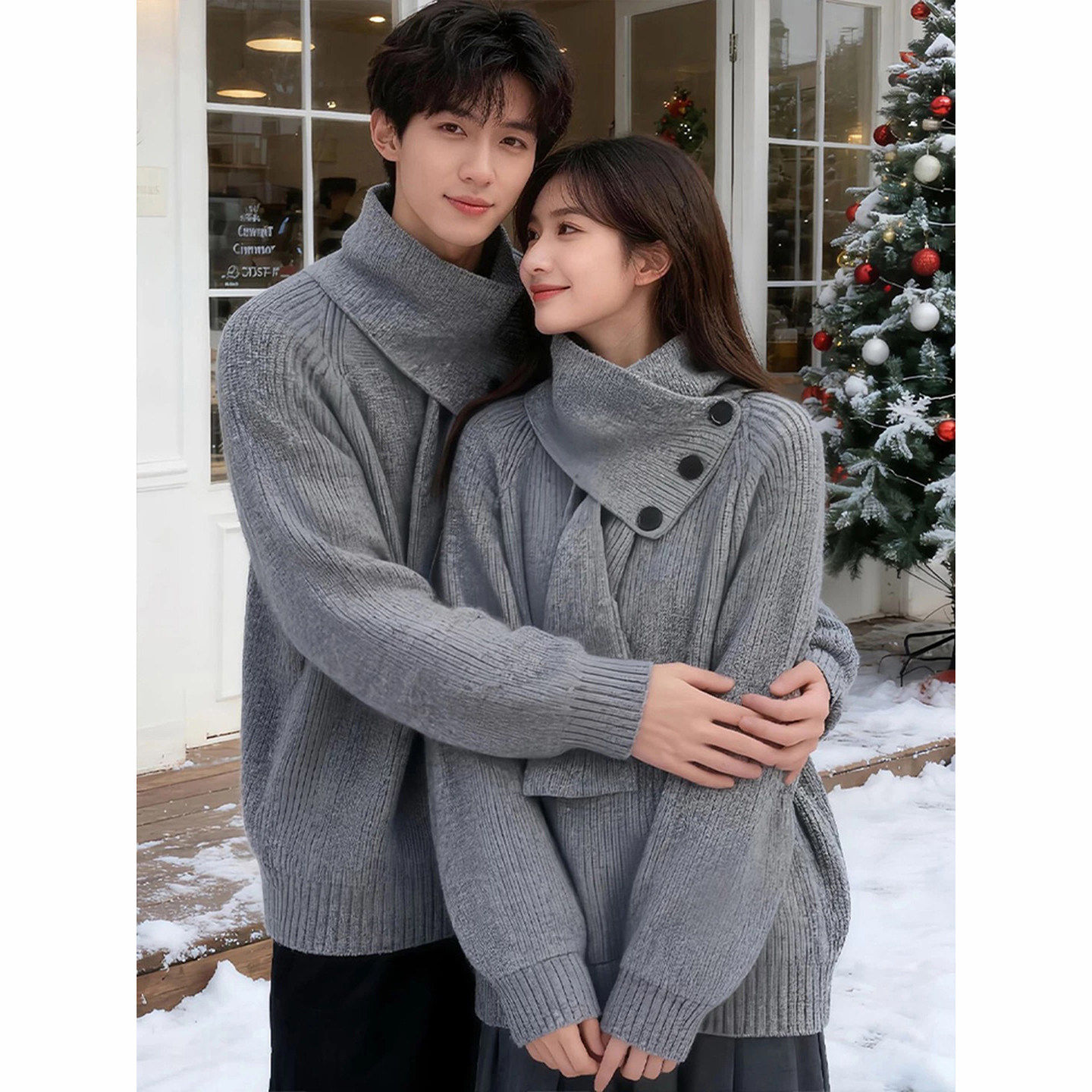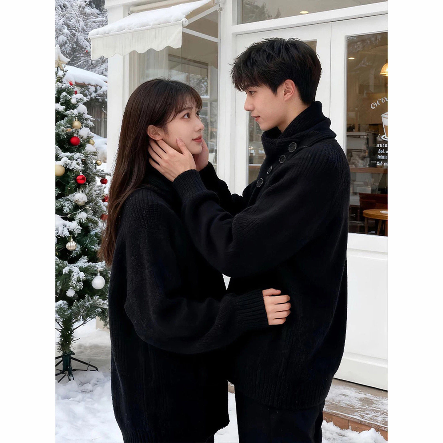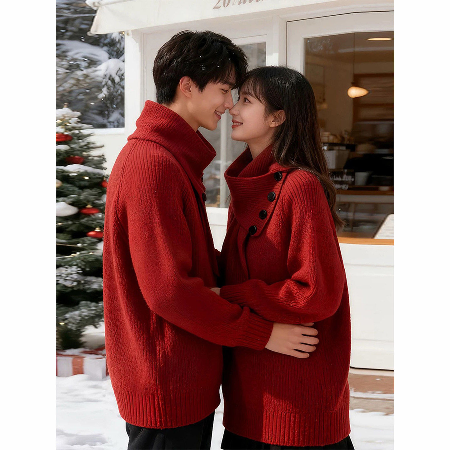 红色半高领毛衣男款冬季本命年跨年情侣外套慵懒设计感针织打底衫