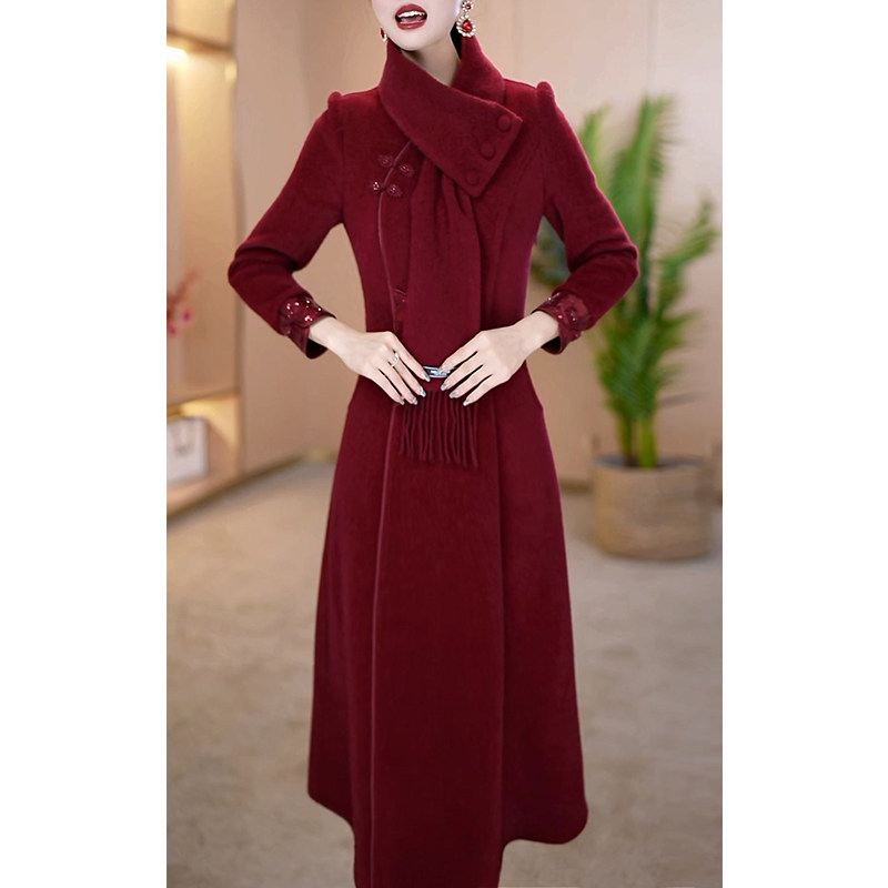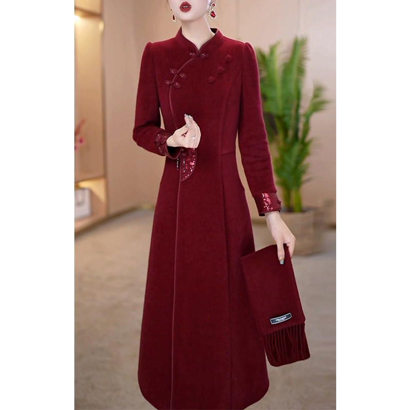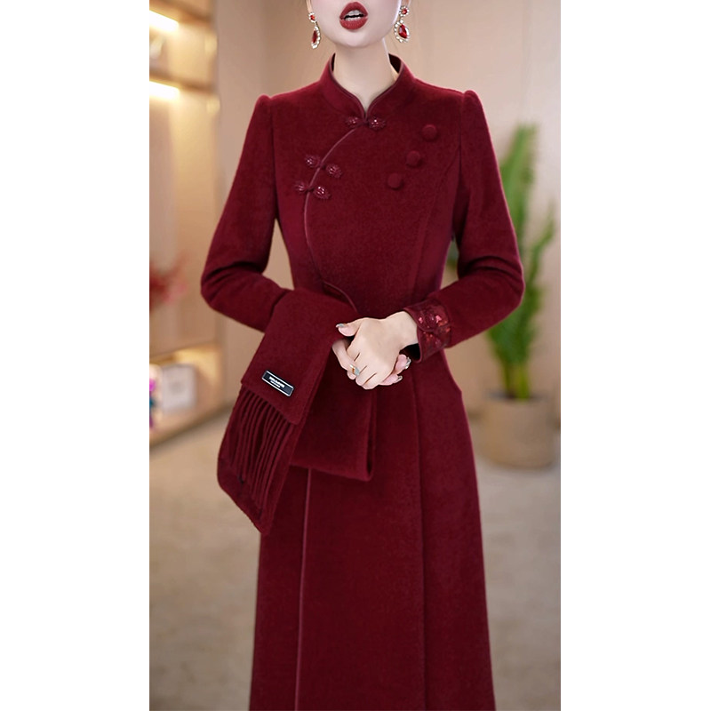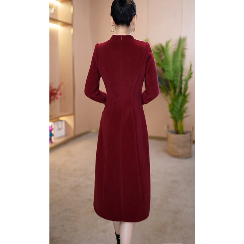 婚宴礼服套装裙女2025秋冬新款加厚保暖妈妈改良旗袍两件套连衣裙