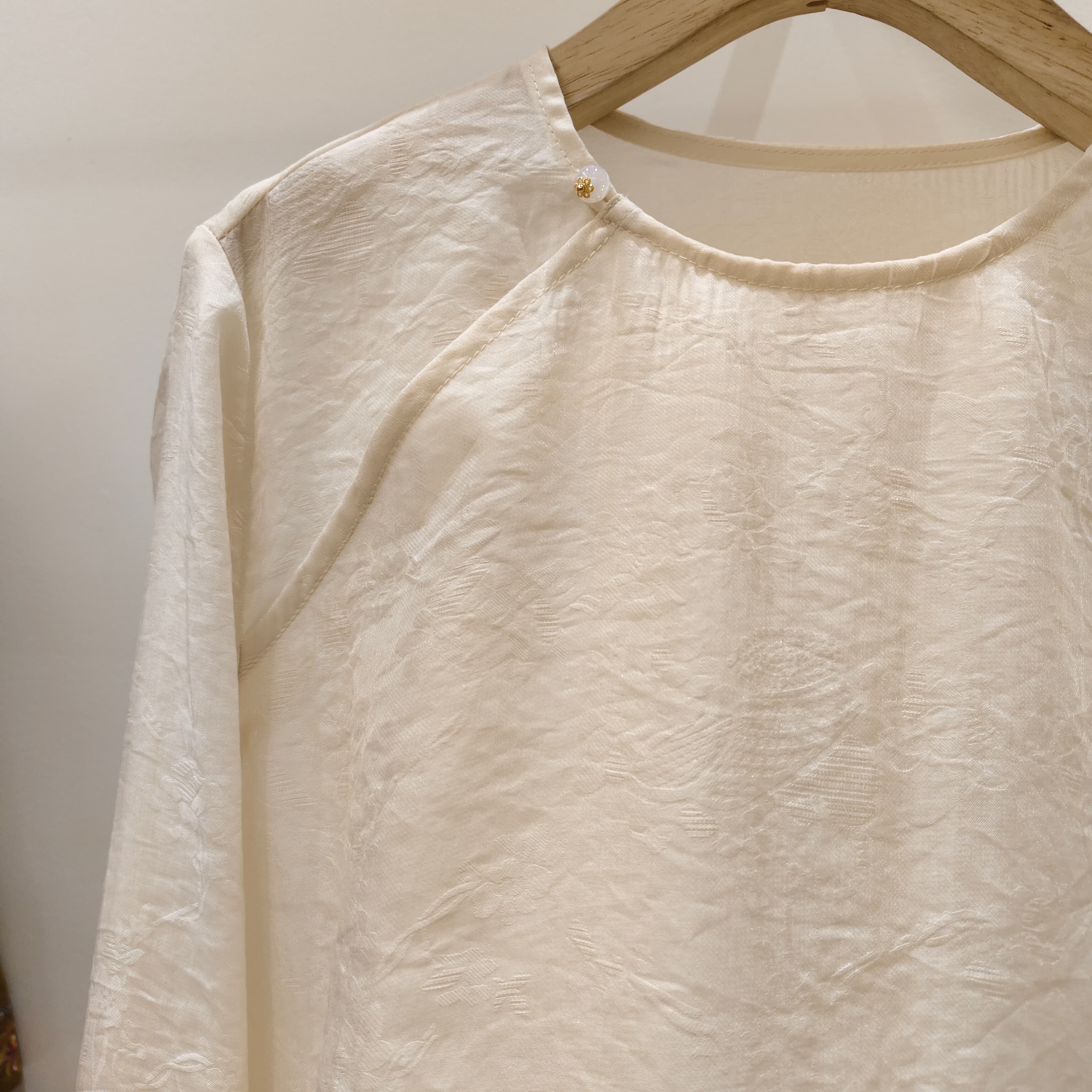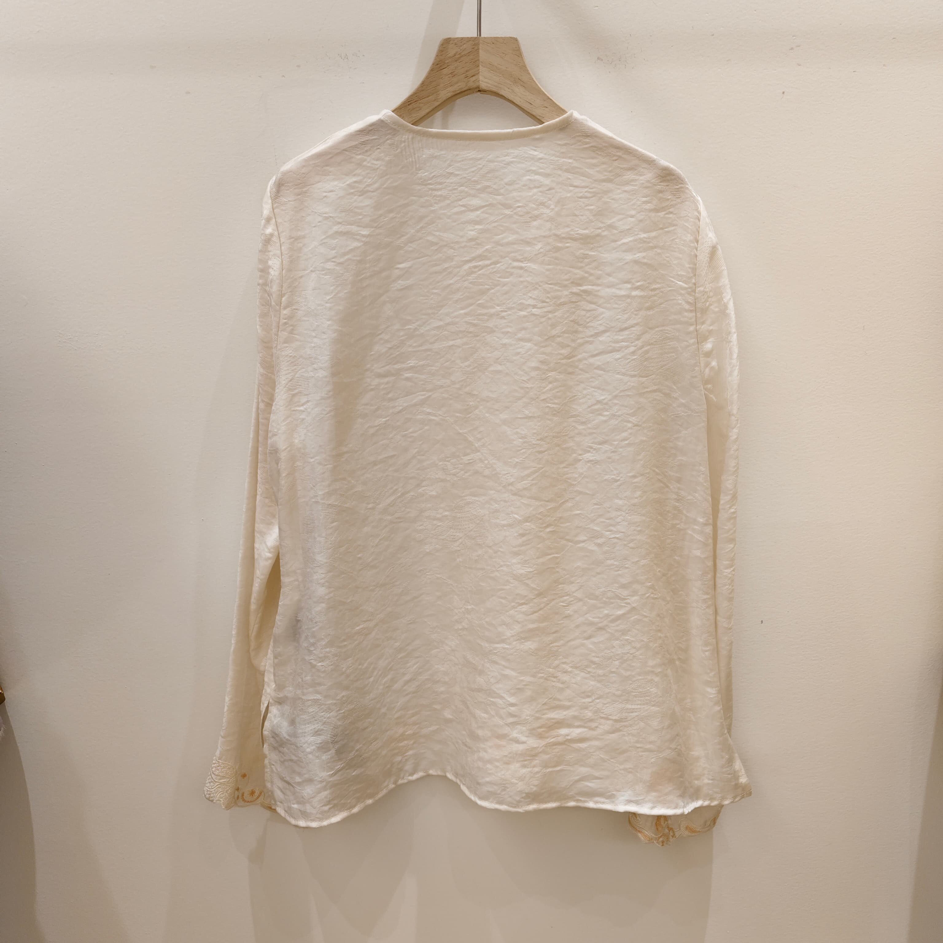 高级感镂空刺绣国风圆领人丝小衫女2026早春新款宽松百搭长袖衬衫