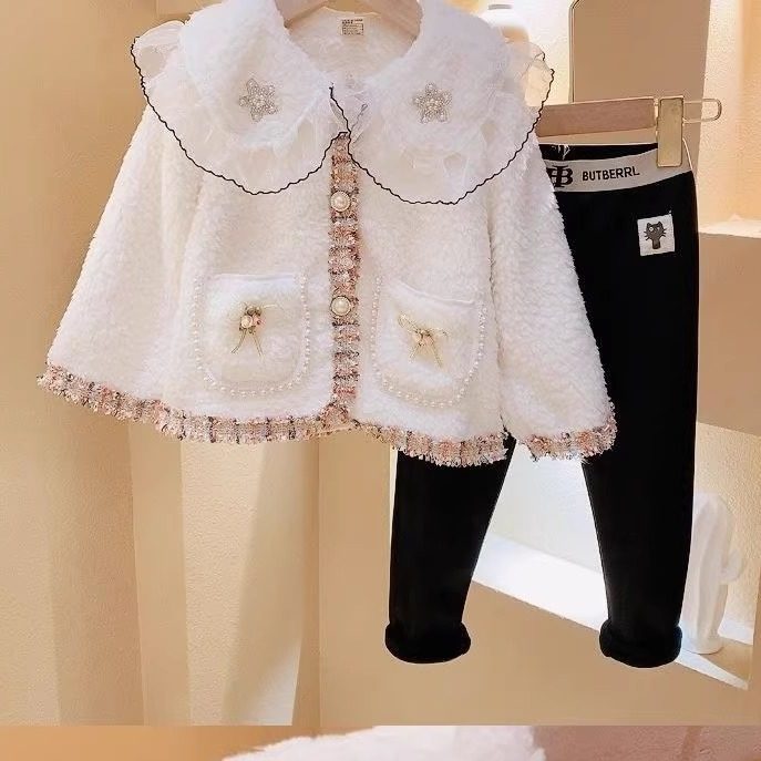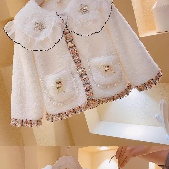 女童小香风娃娃领外套加绒加厚2025冬季新款韩版儿童公主风大衣潮