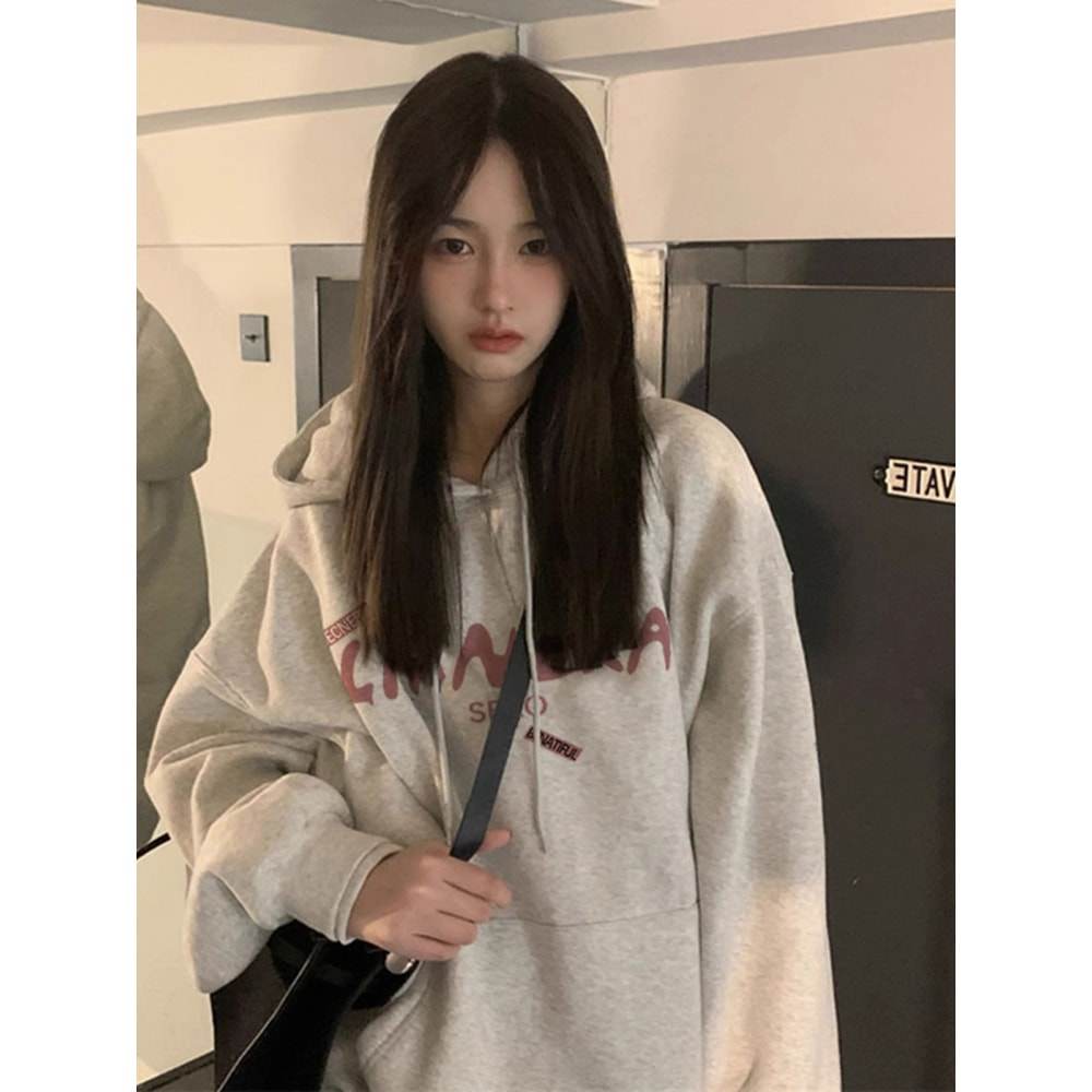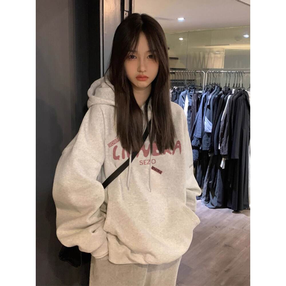 美式白灰色连帽卫衣女款秋冬2026新款爆款小个子宽松薄款外套上衣