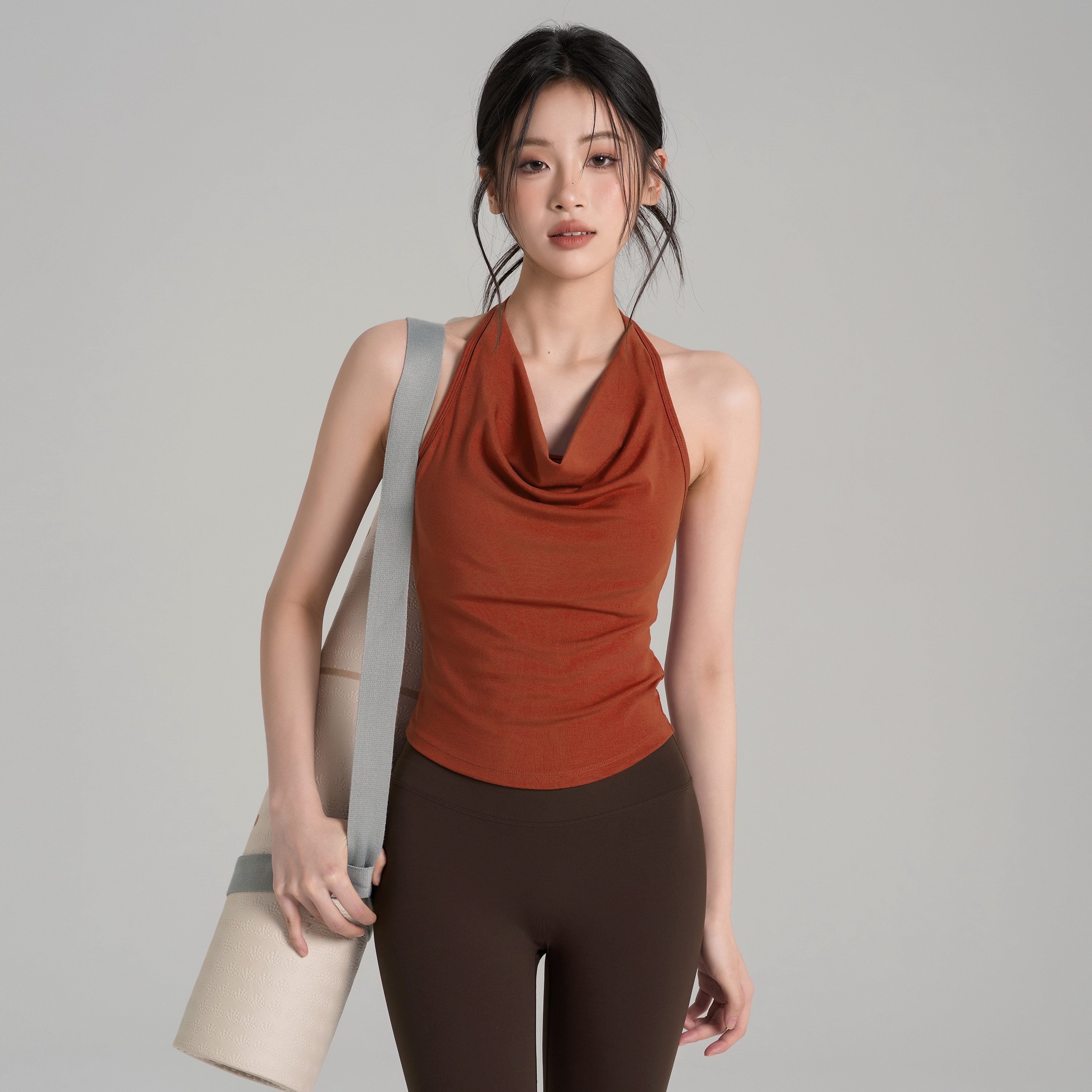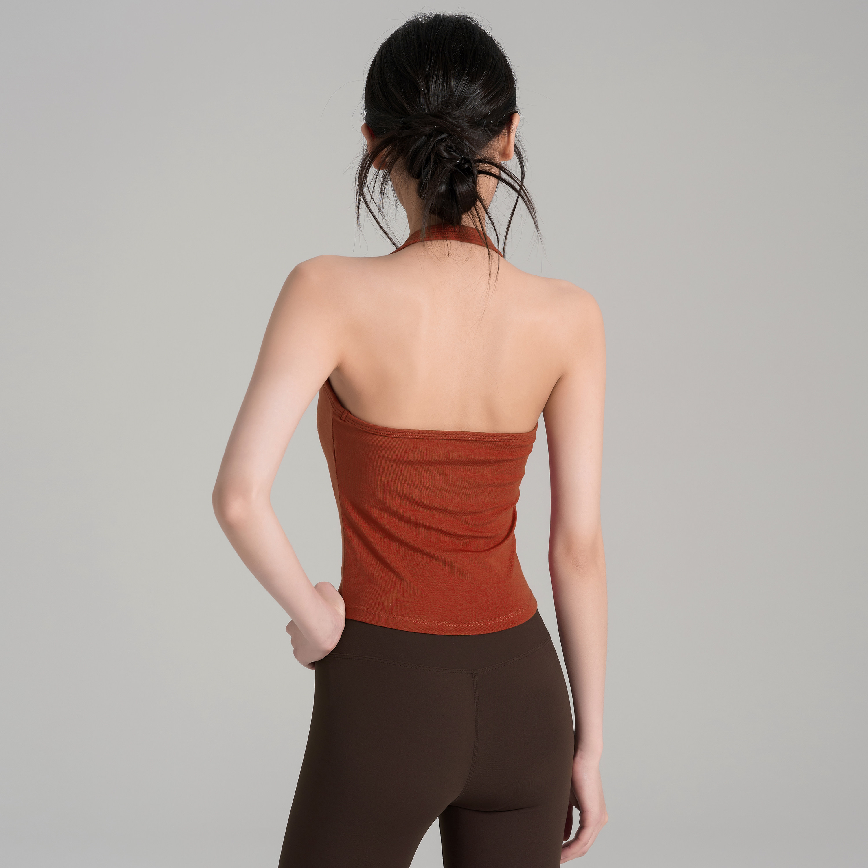 岚纹带胸垫大露背瑜伽背心女外穿性感挂脖健身服防震训练运动文胸