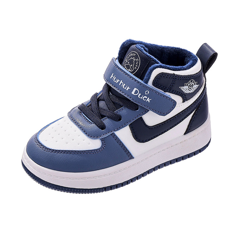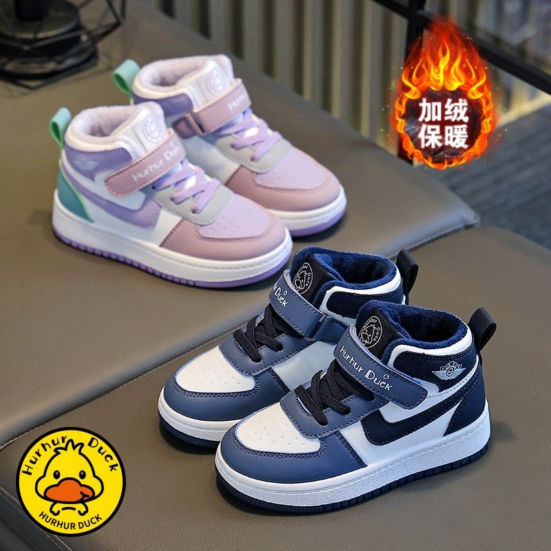 小黄鸭儿童高帮运动鞋冬季新款校园个性休闲鞋男女童加绒保暖板鞋