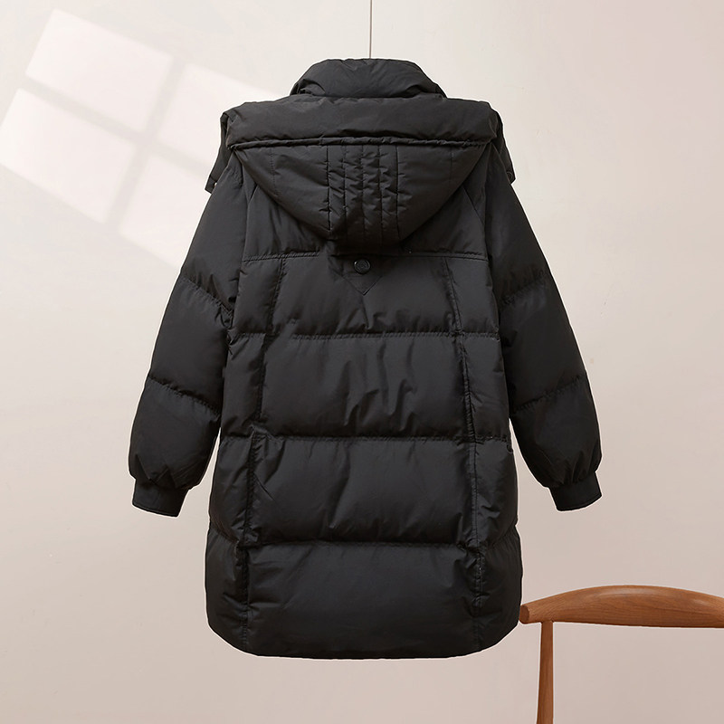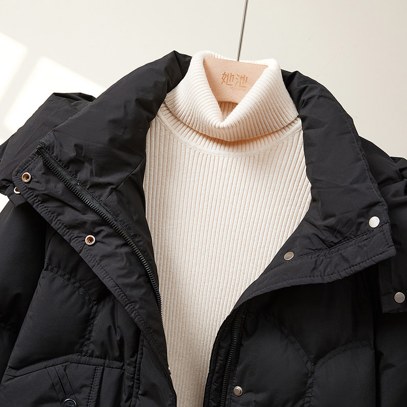 她池连帽羽绒服2025冬装新款女装宽松简约显瘦中长款休闲保暖外套