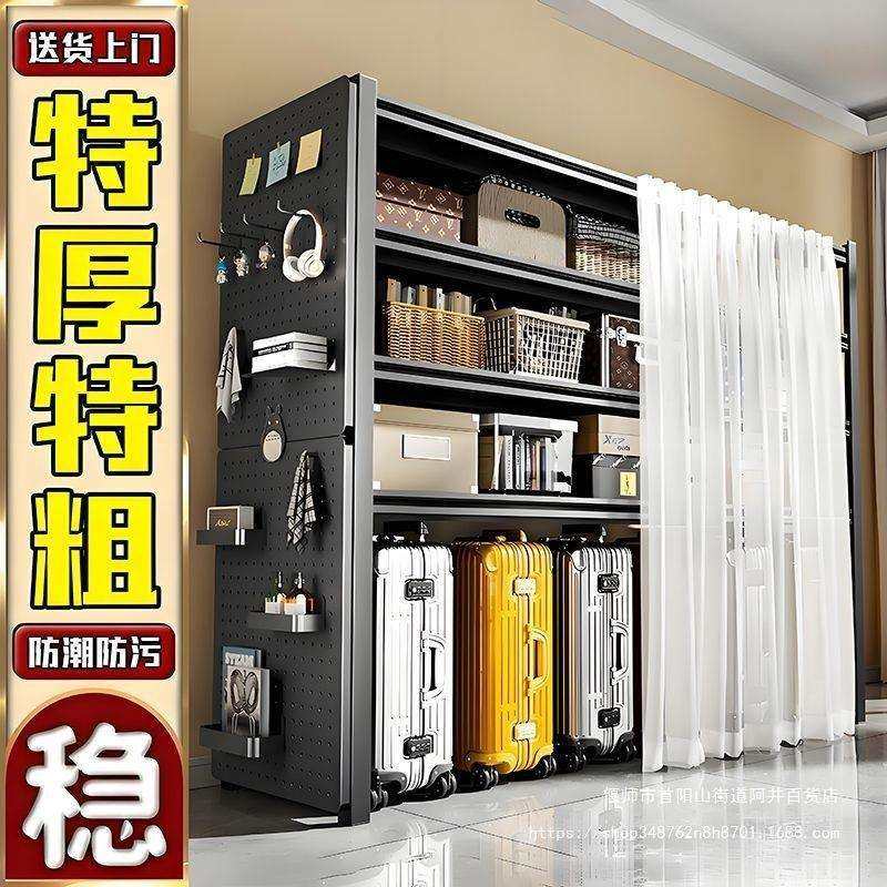 防尘帘洞洞板置物架多层家用货架行李箱落地客厅收纳架储物铁架子