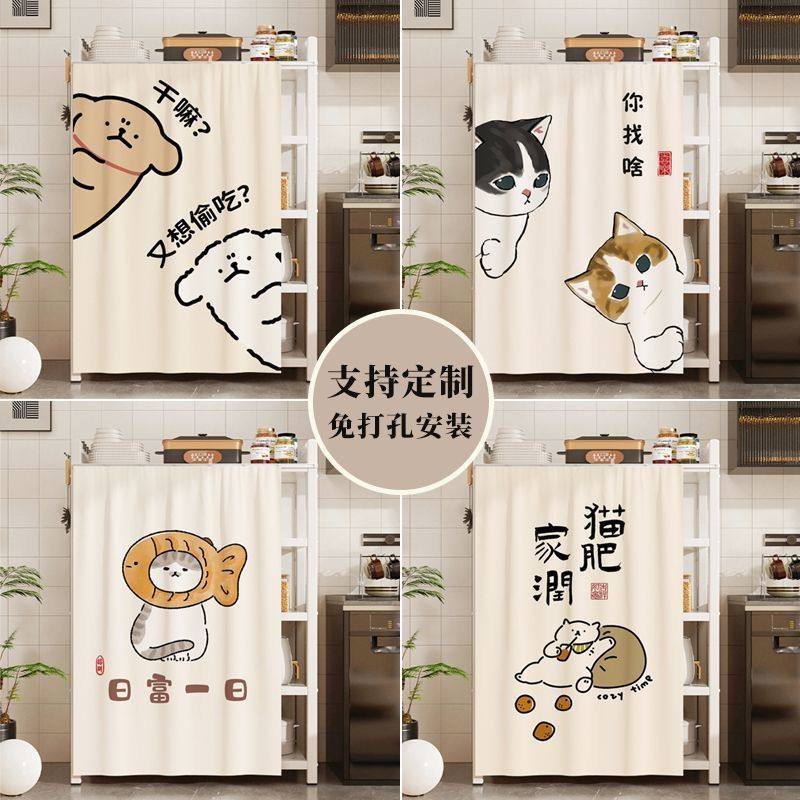 置物架柜子遮挡帘免打孔魔术贴滑轨防尘拉帘厨房无门储物柜遮丑帘