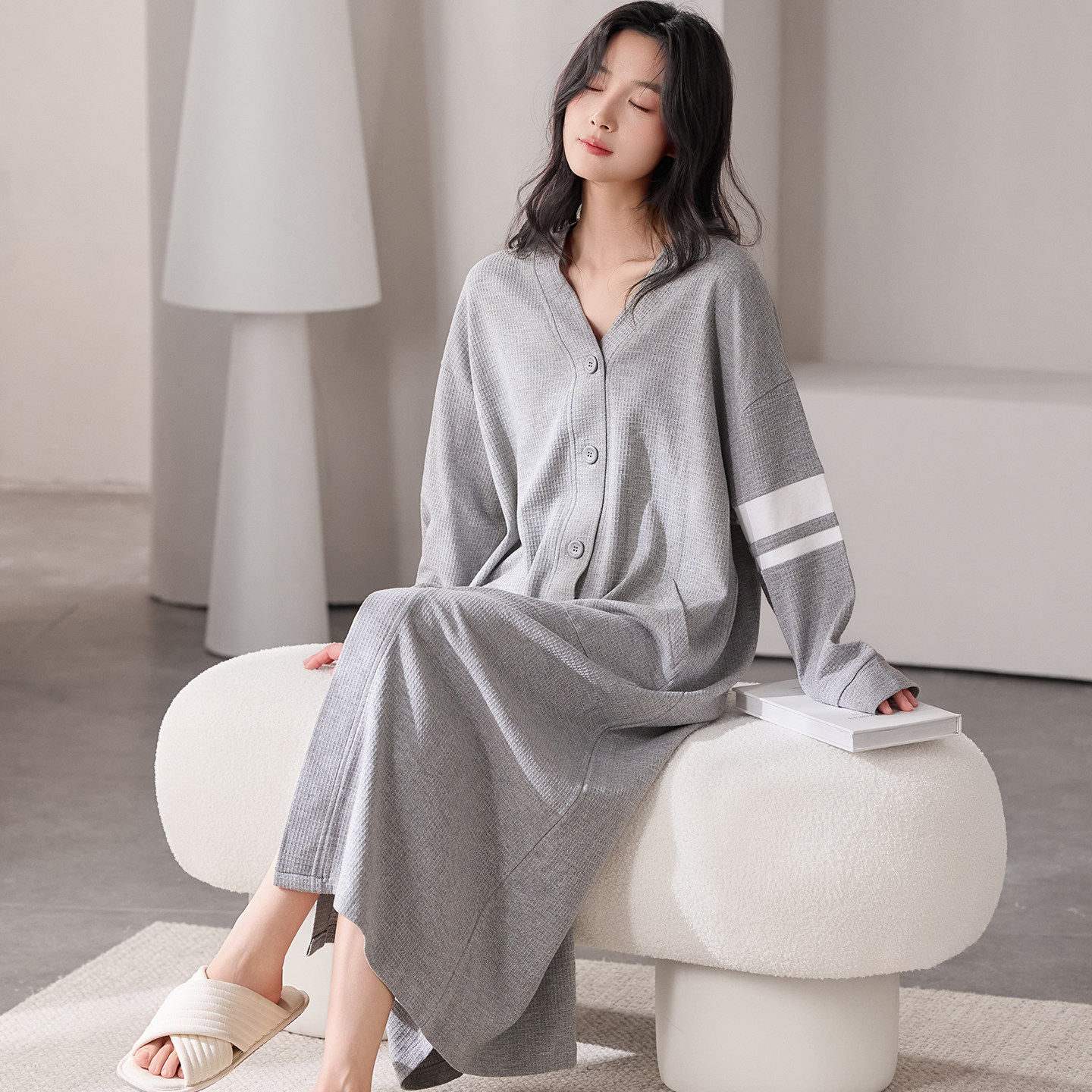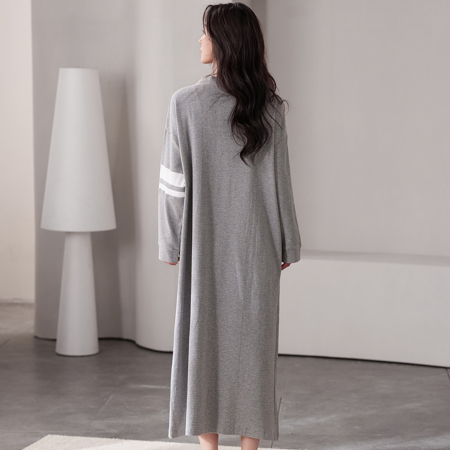 2026新款网红风睡裙女士春秋季100%纯棉长袖开衫华夫格睡衣连衣裙