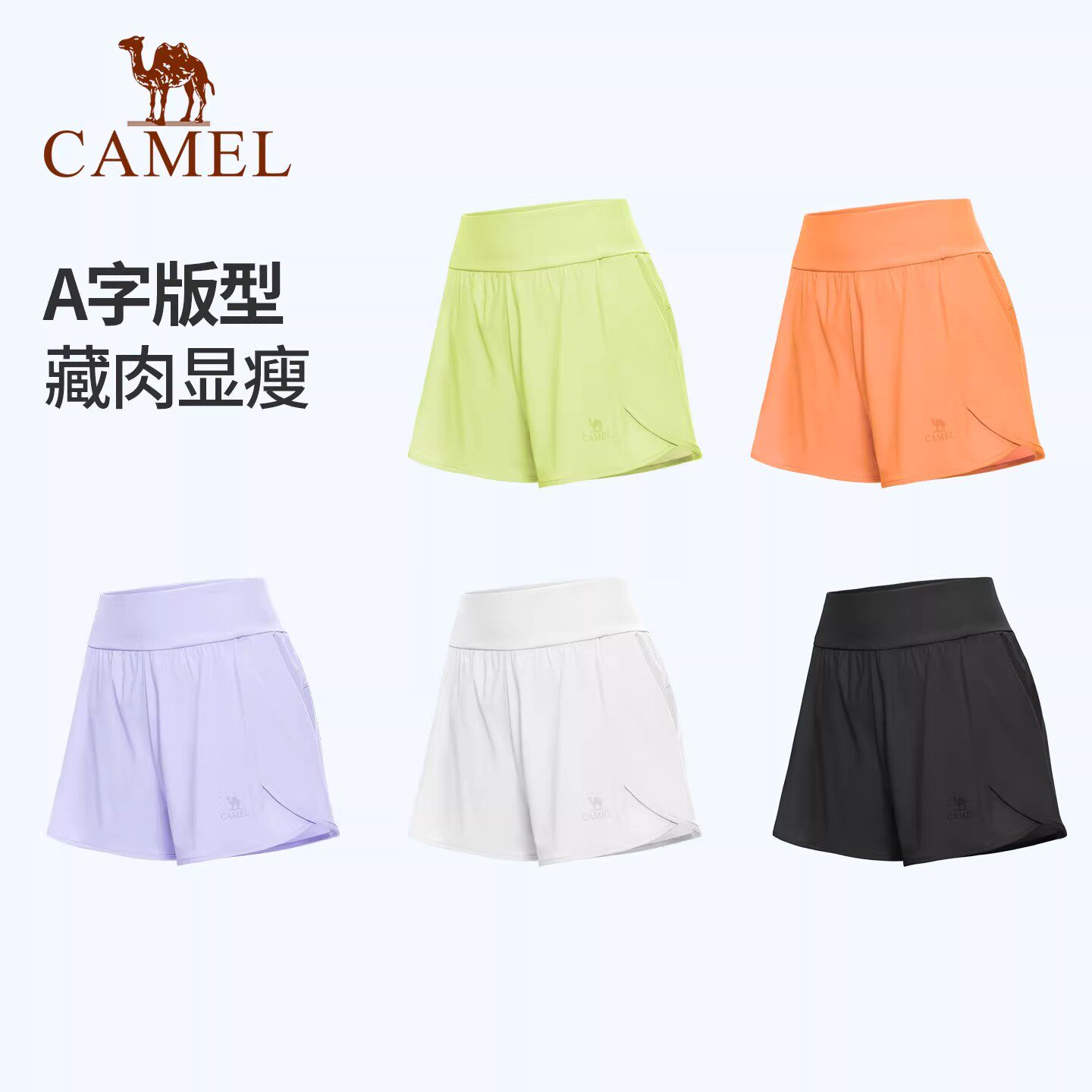 骆驼瑜伽短裤女款春季透气防走光训练短款健身裤时尚针织运动短裤