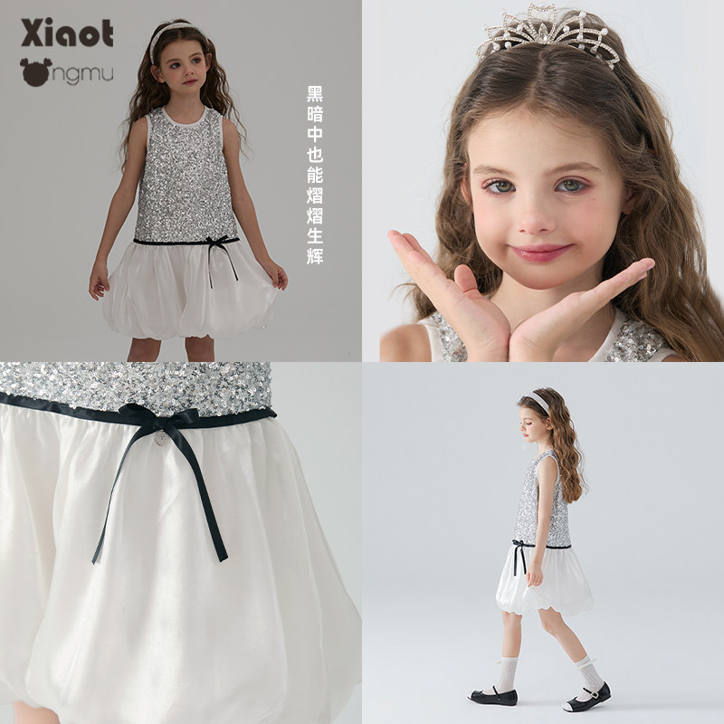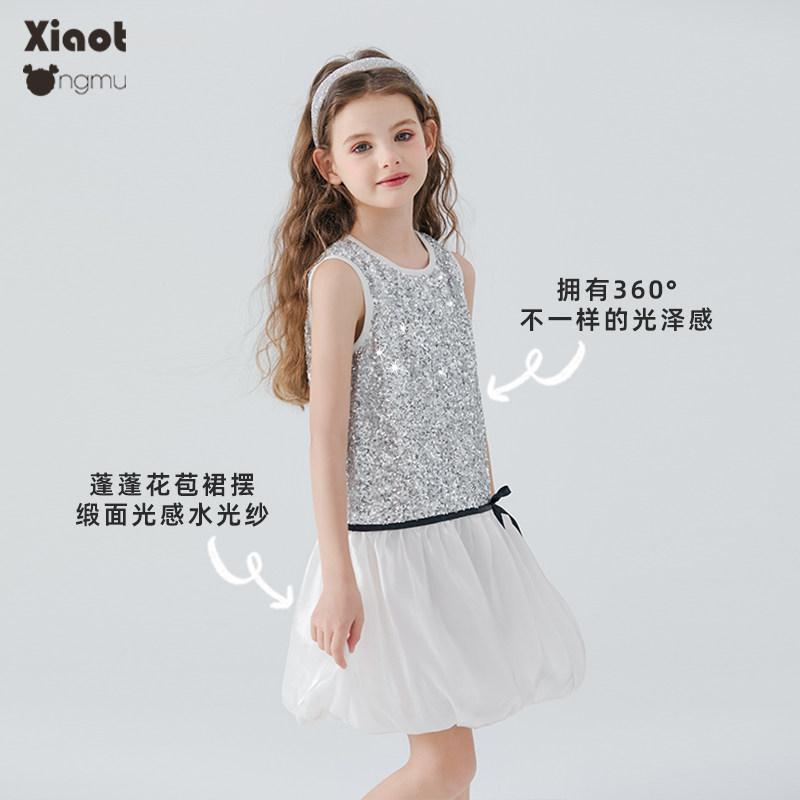 小童木 富家千金感公主裙女童连衣裙夏季新款亮片礼服裙儿童裙子