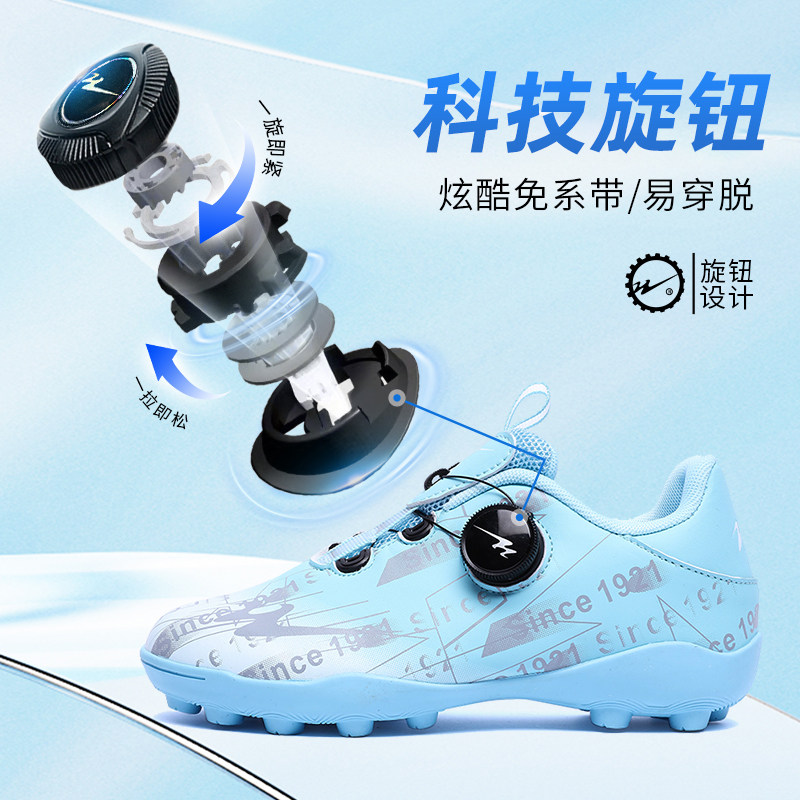 双星儿童足球鞋男童TF碎钉夏季透气小学生女童男孩免系带训练鞋男