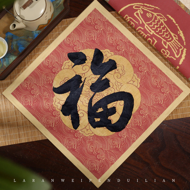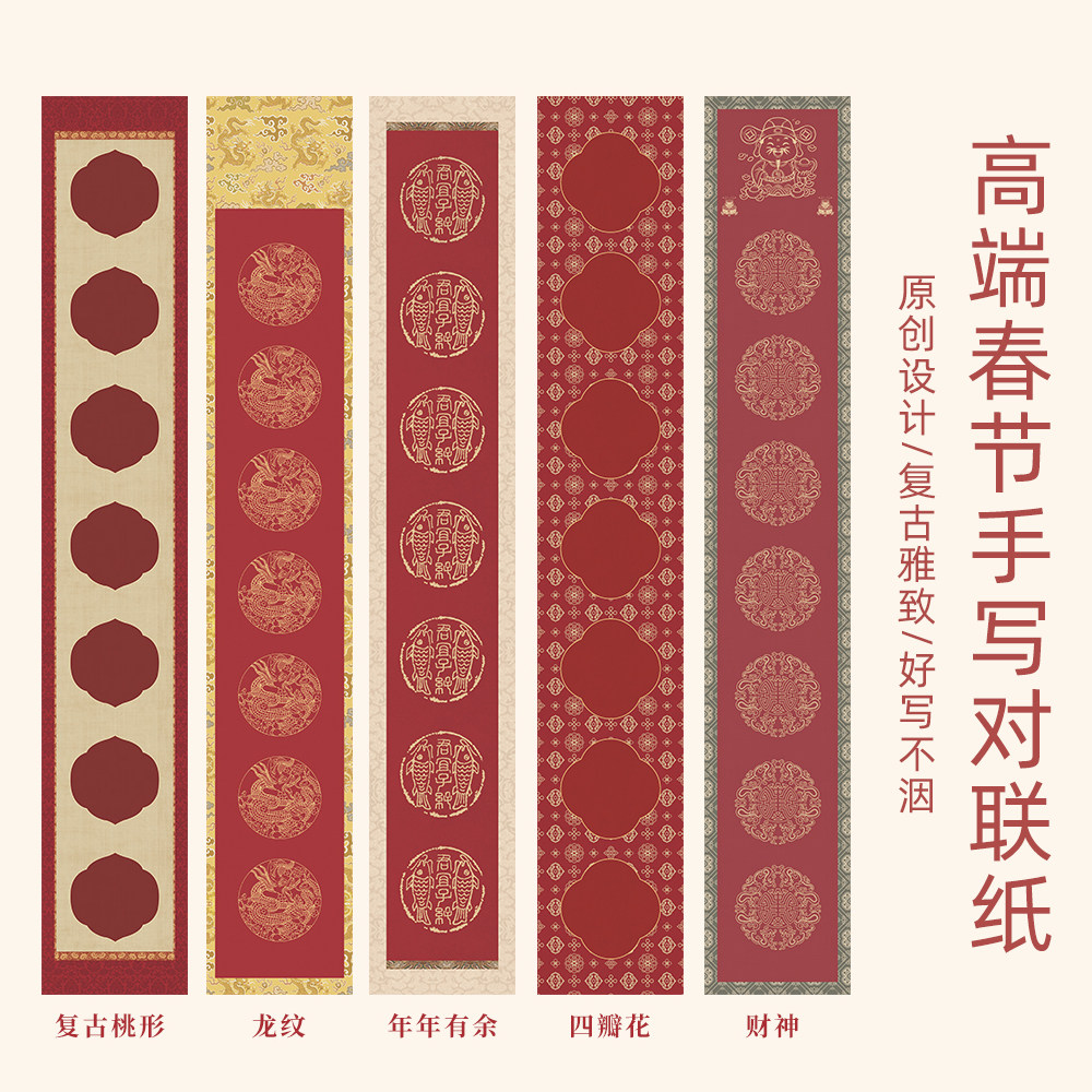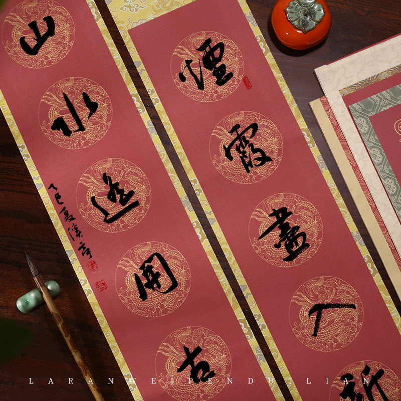 【原创新品】民国风复古对联纸2026马年创意春联纸空白手写加厚半生熟万年红福字斗方门贴红纸蜡染自写春联纸