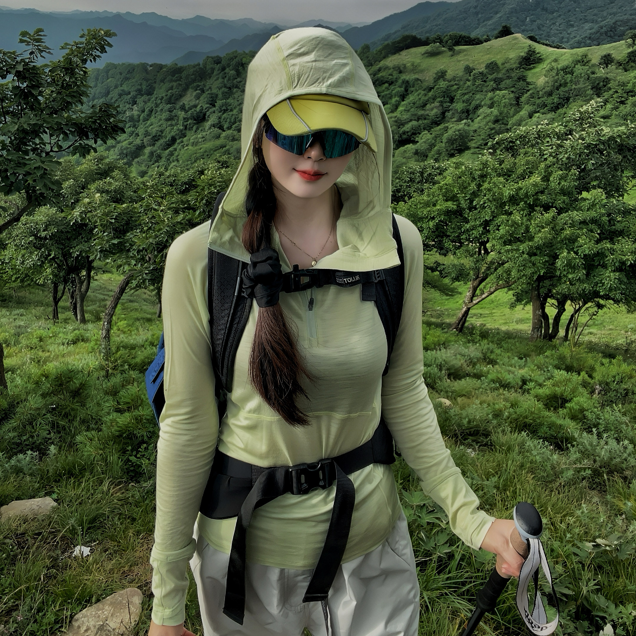 灰壳美利奴羊毛速干衣女款卫衣连帽衫美丽诺套头秋冬季跑步半拉链